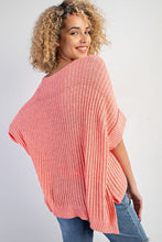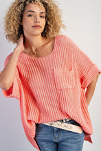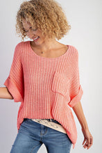 Fresh Salmon Rolled Cuffs Loose Knit Tee with Slits