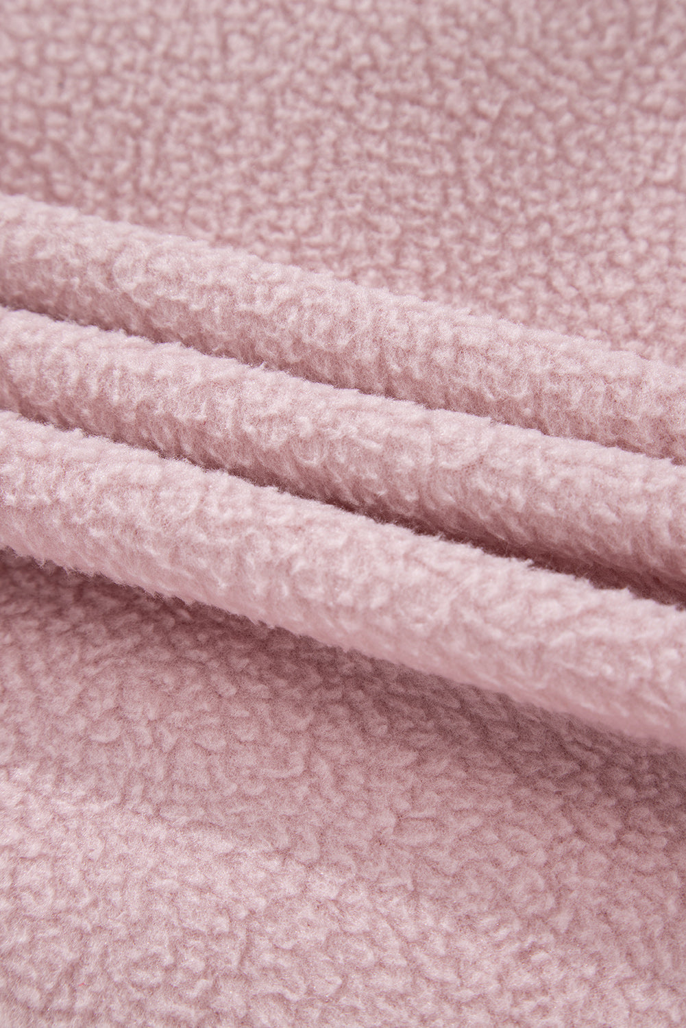 Fushia Stand Neck Half Button Zip Pocket Plush Sweatshirt