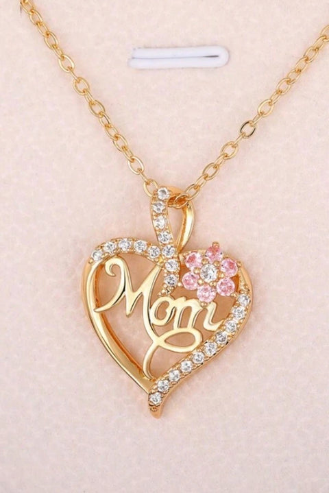 Gold Mom Rhinestone Flower Hollow-out Heart Necklace