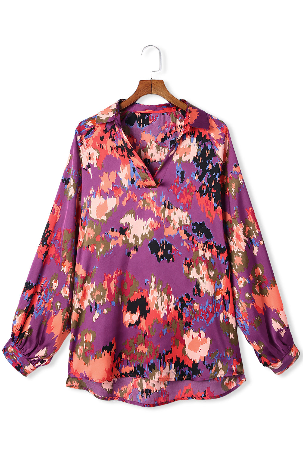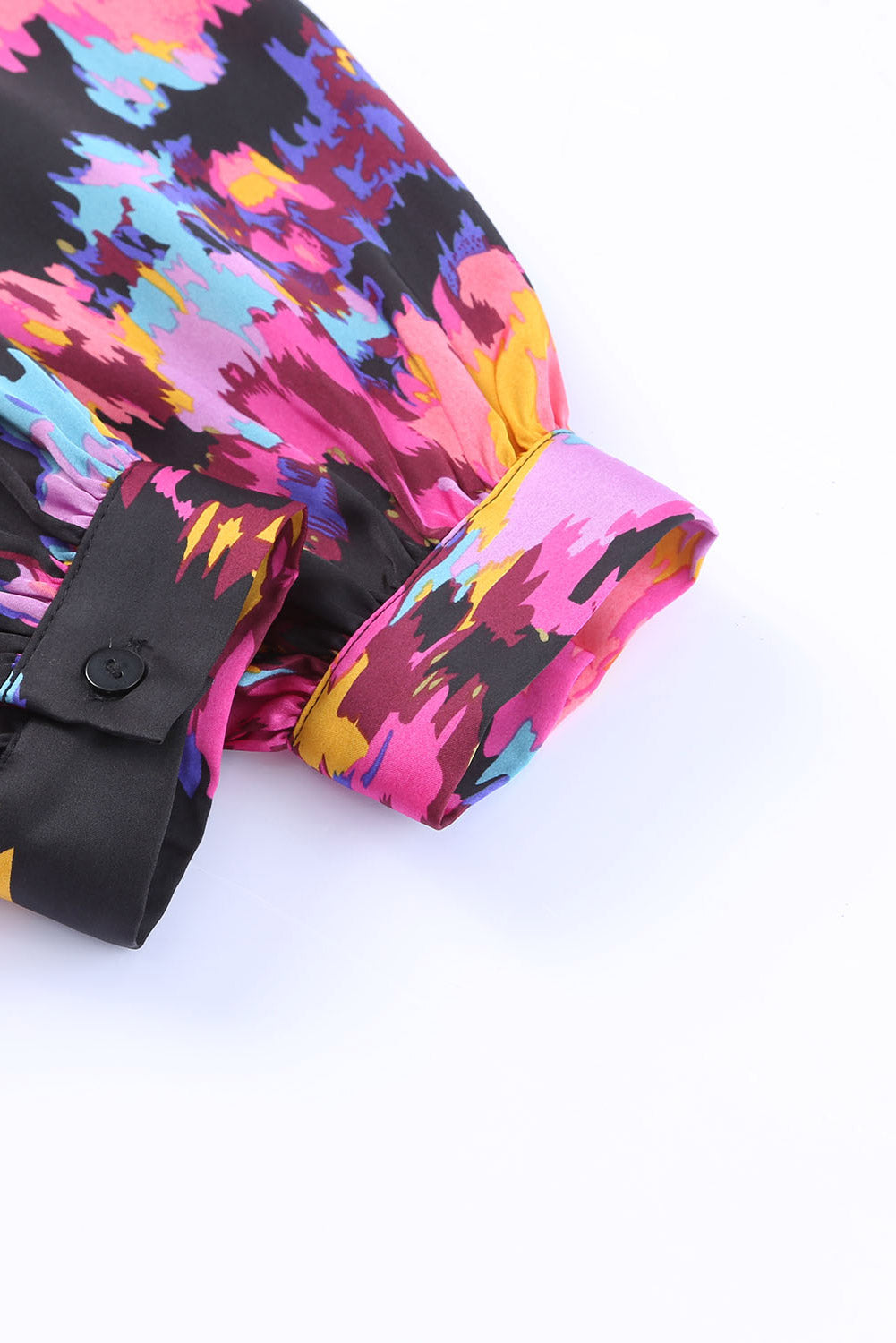 Blusa con mangas abullonadas y cuello en V con estampado de grafiti