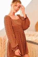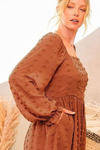 Grapefruit Orange Swiss Dot Flounced Bubble Sleeve Square Neck Romper