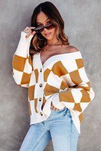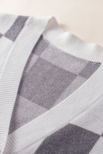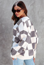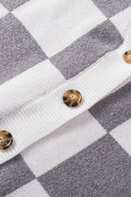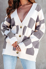 Cárdigan tipo suéter con botones y estampado de cuadros en contraste gris