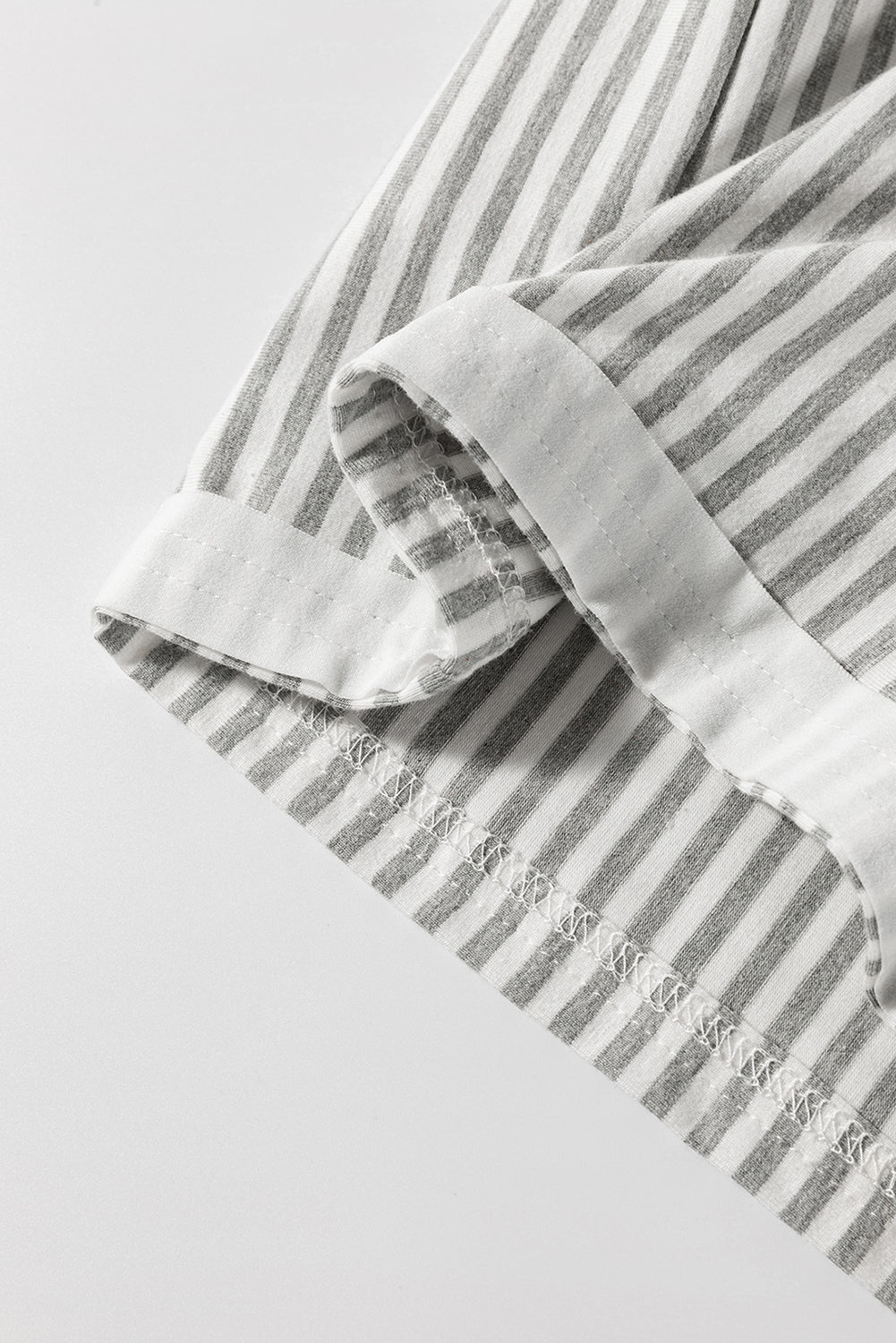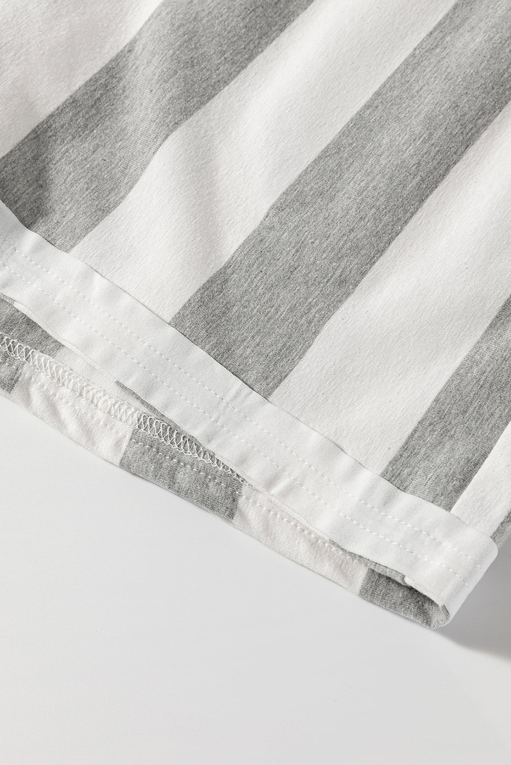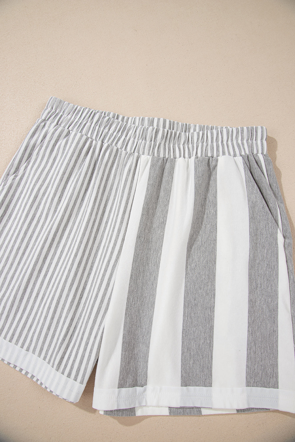Gray Stripe Mixed Print Short Sleeve Top and Pocketed Shorts Set