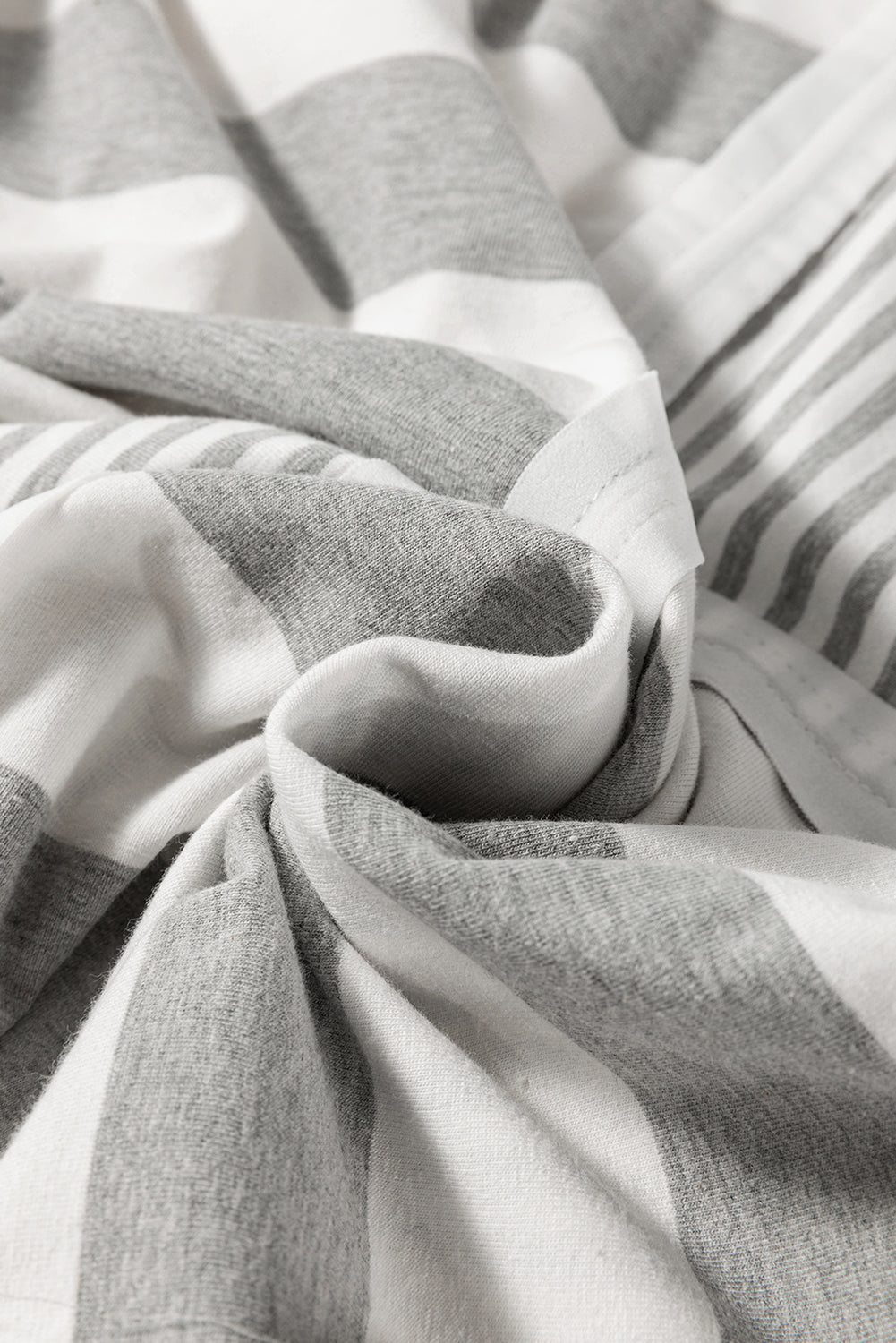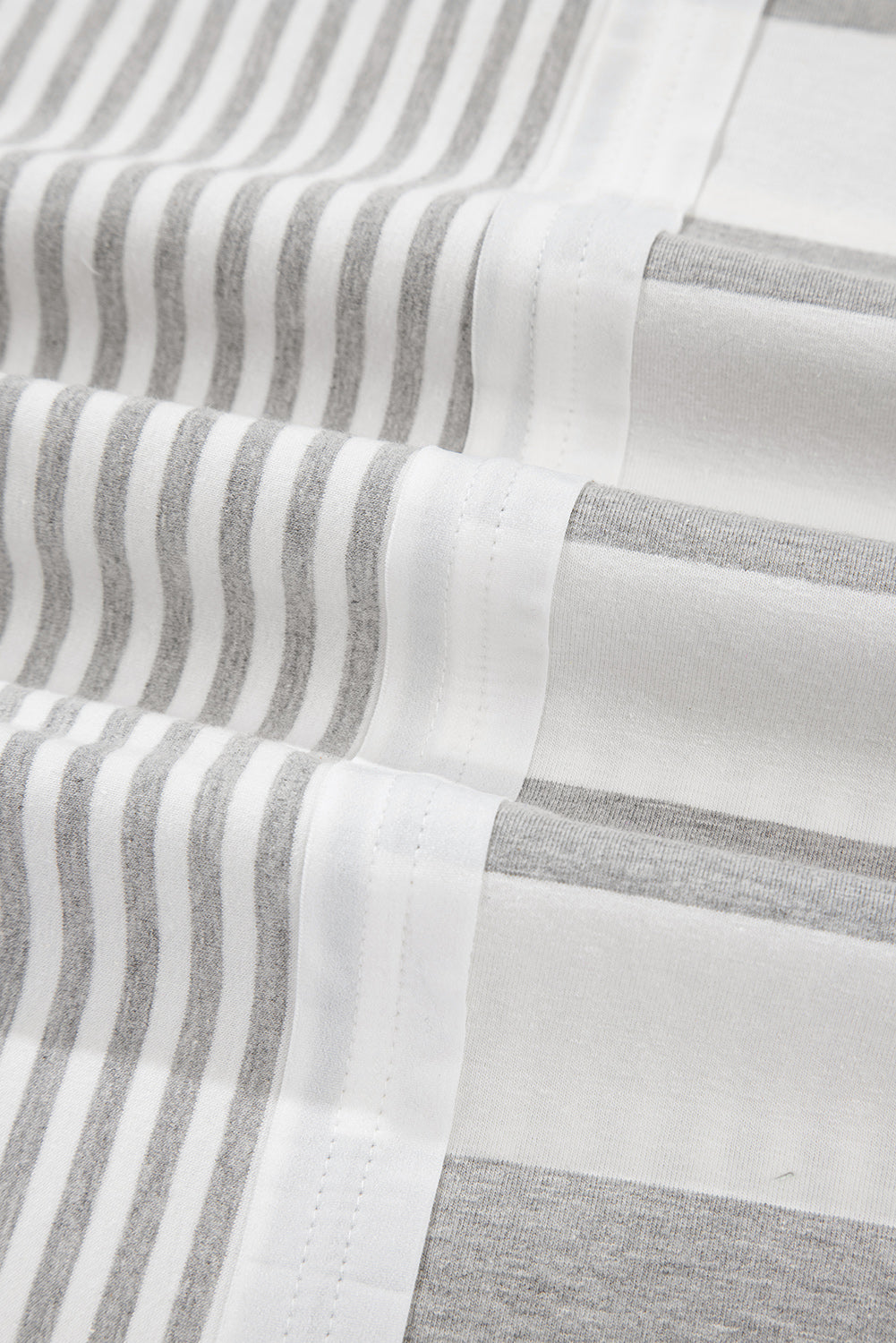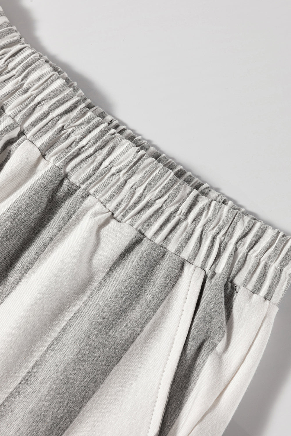 Gray Stripe Mixed Print Short Sleeve Top and Pocketed Shorts Set