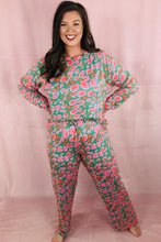 Green Plus Size Printed Long Sleeve and Pants Lounge Set