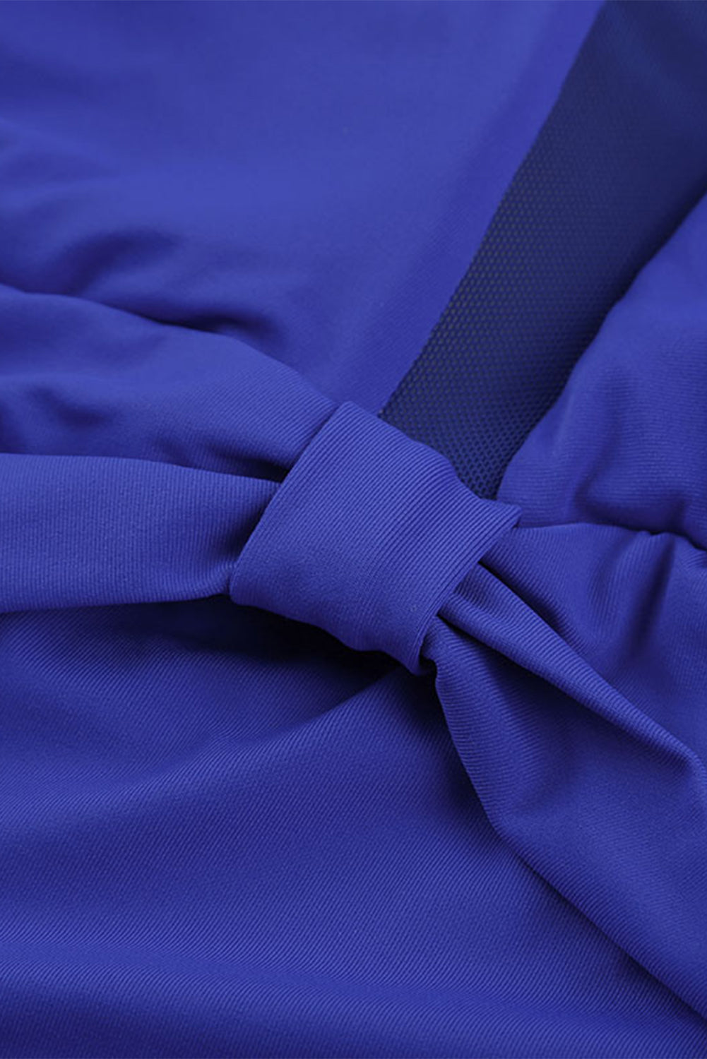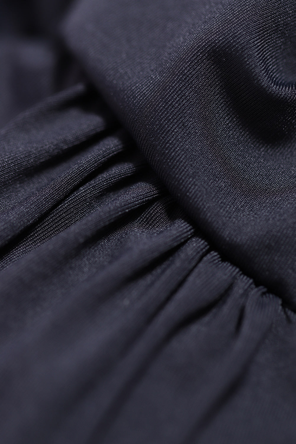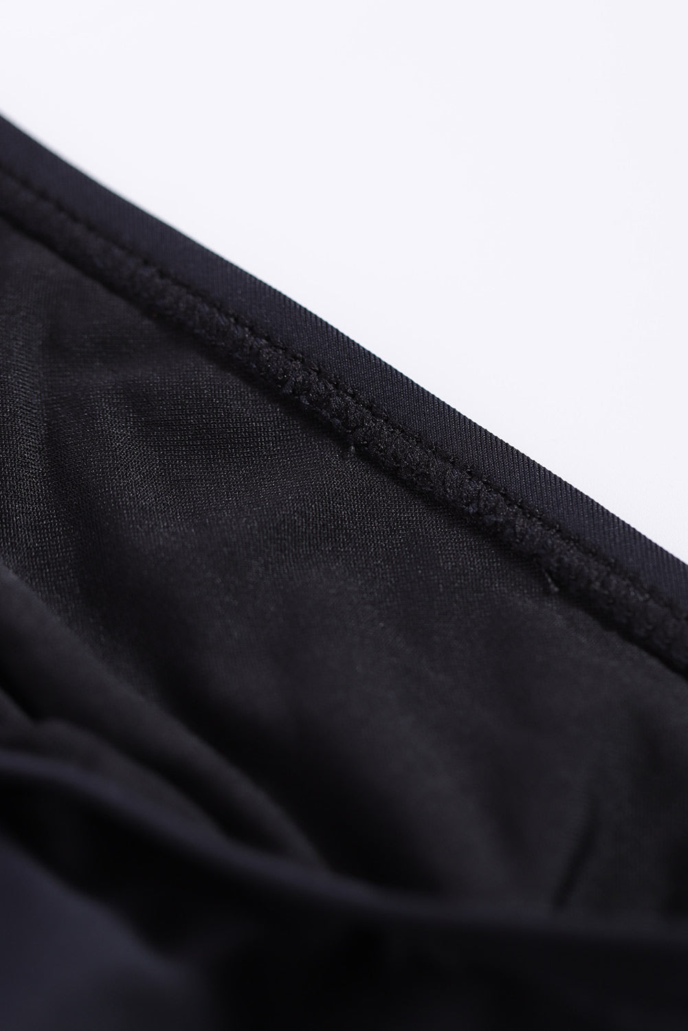 Traje de baño tankini fruncido de malla con cuello alto y escote pronunciado