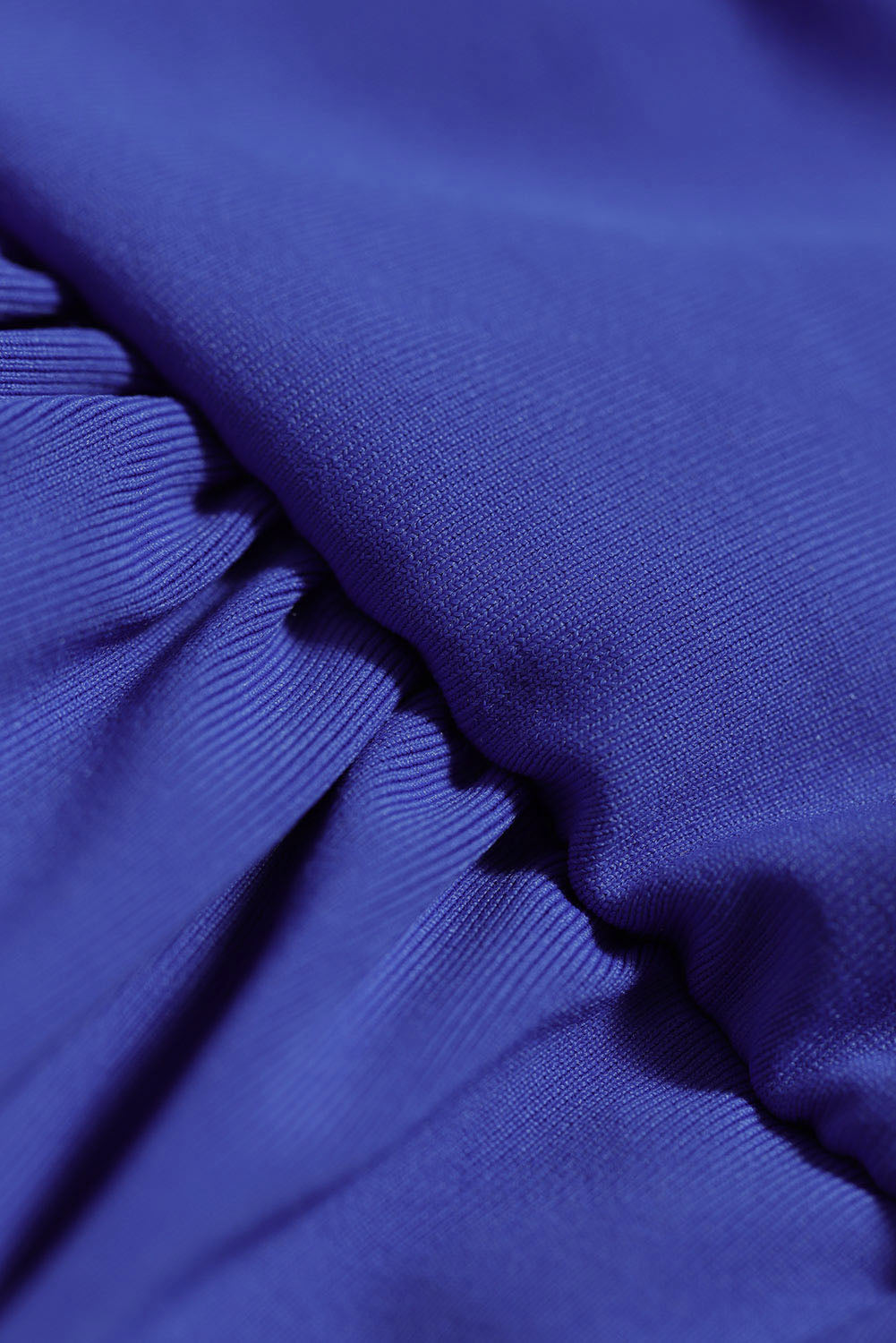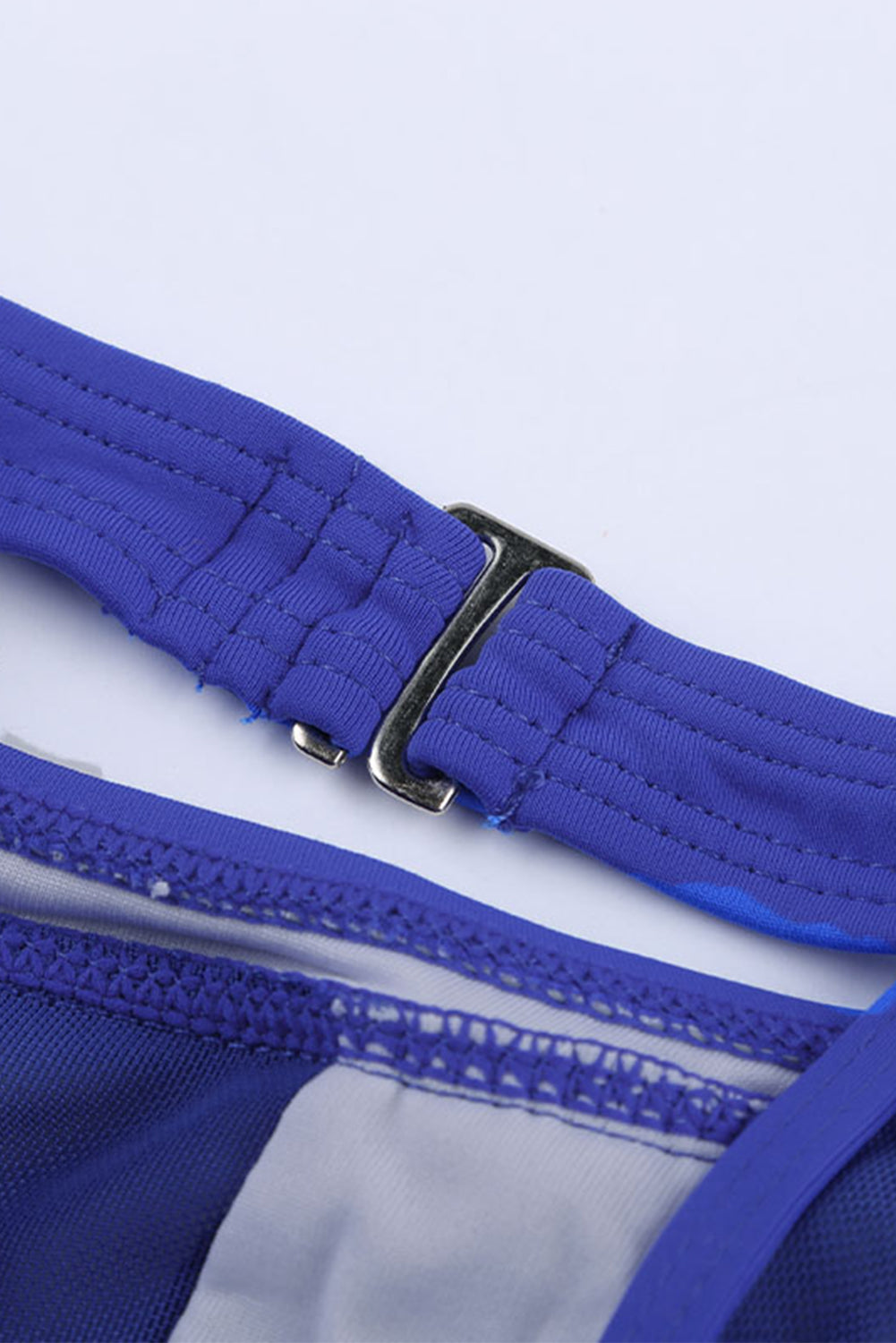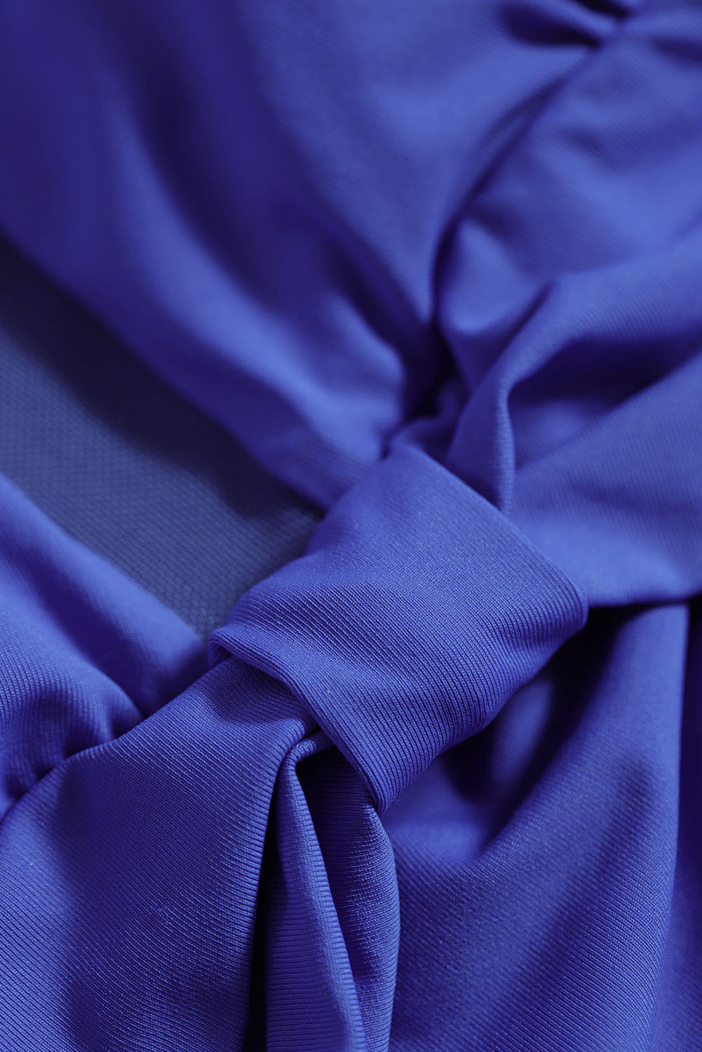 Traje de baño tankini fruncido de malla con cuello alto y escote pronunciado