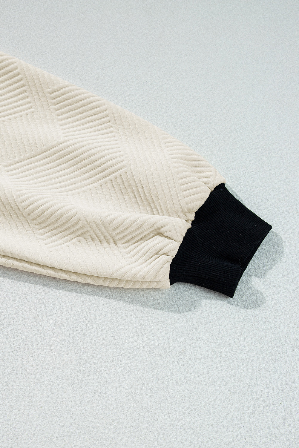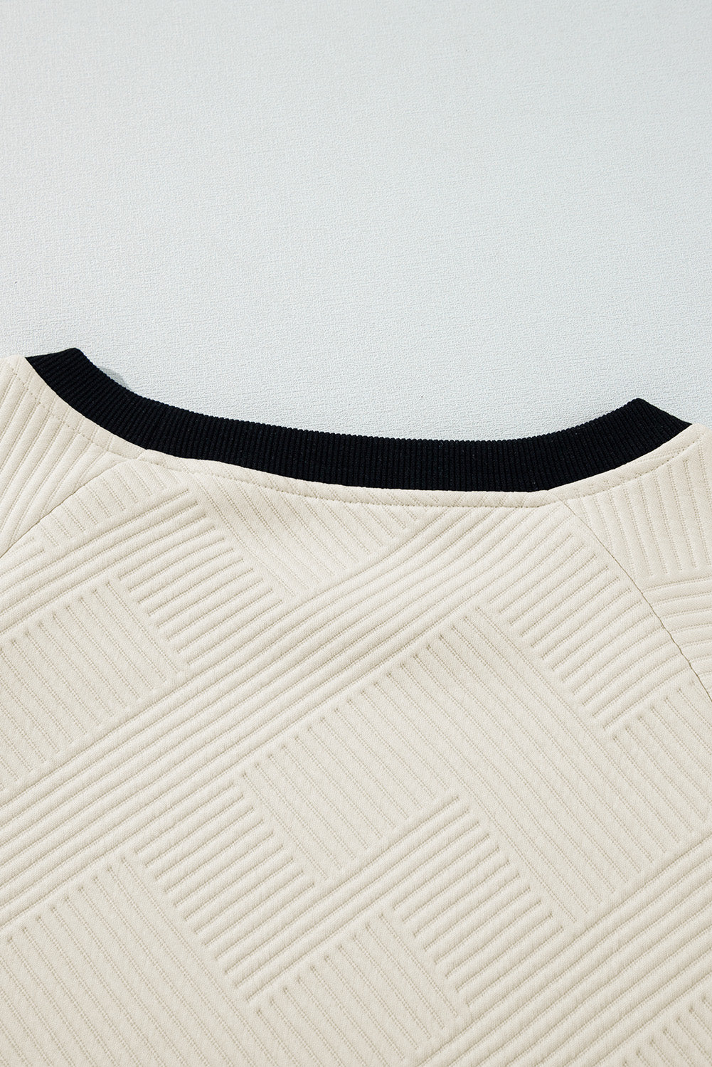 Jet Stream Color Block Edge Raglan Sleeve Crew Neck Textured Top
