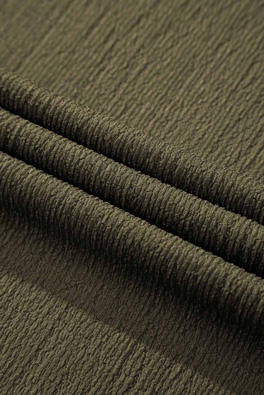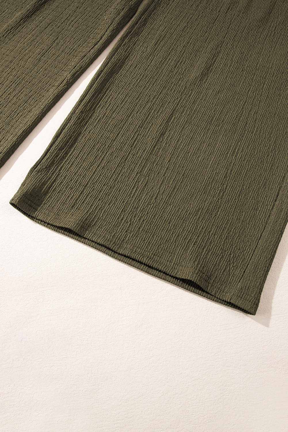Jungle Green Plus Size Textured Shirred High Waist Casual Pants