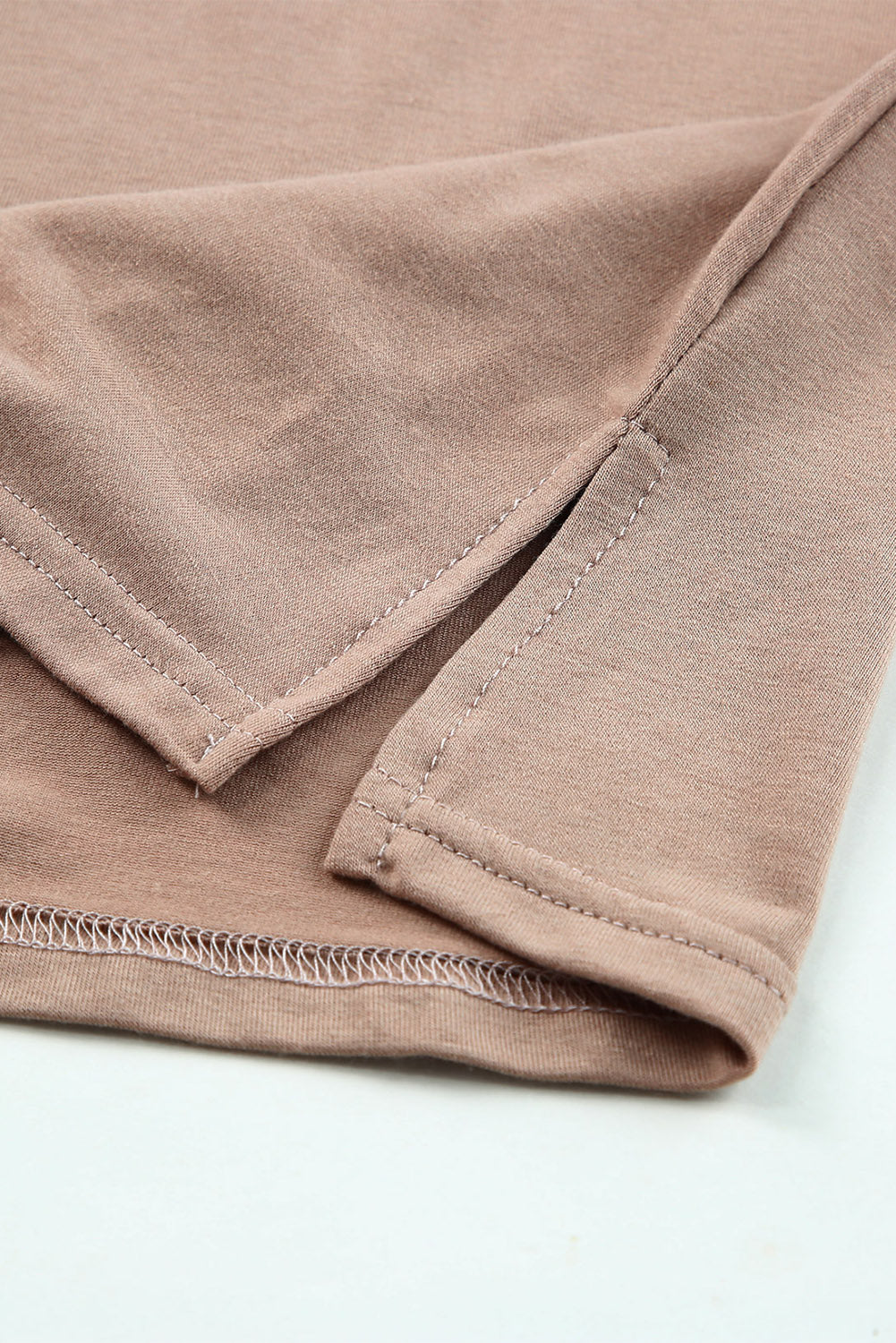 Top caqui de talla grande con bloques de color y canesú de leopardo