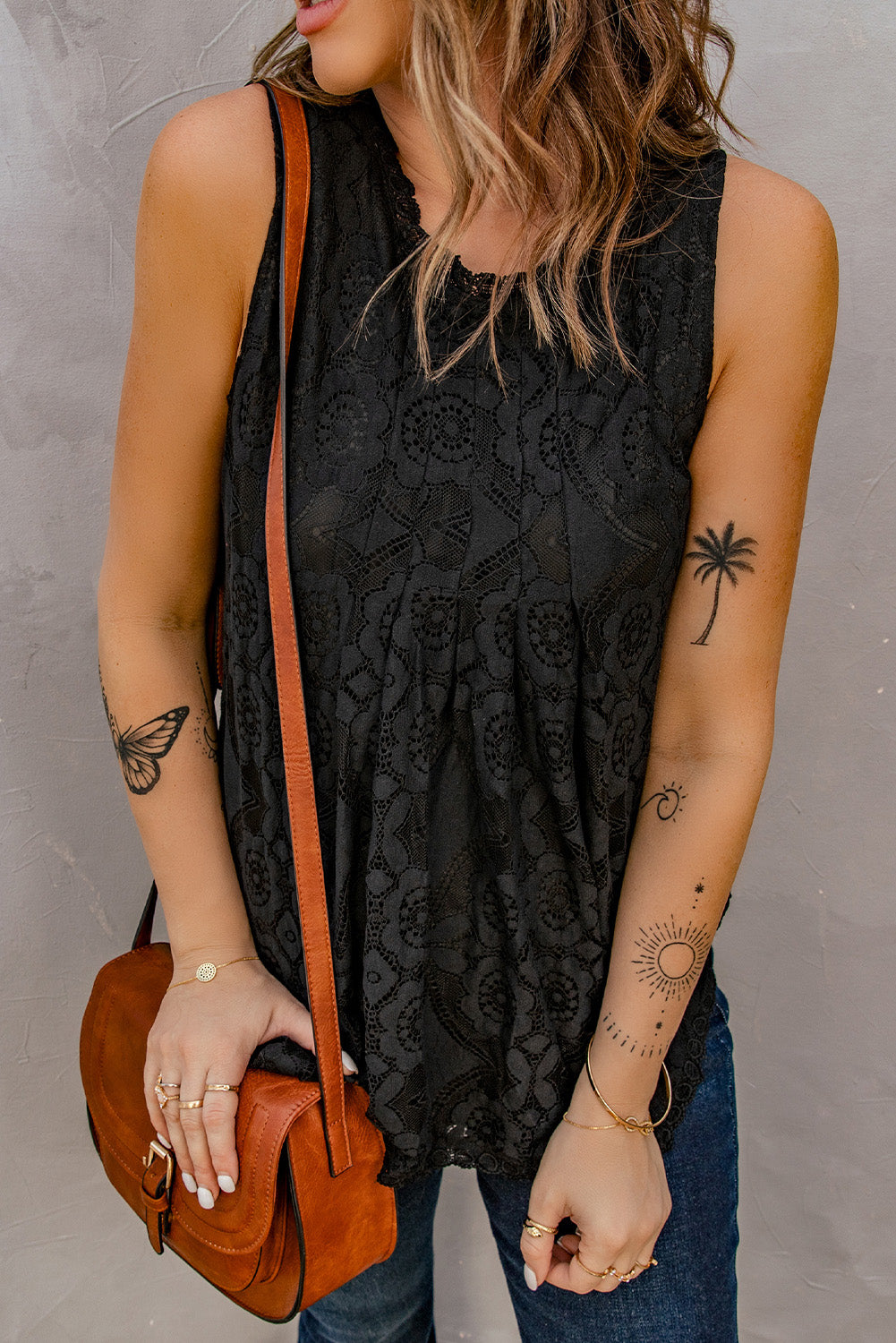 •La camiseta de color sólido presenta el borde de encaje y el diseño hueco