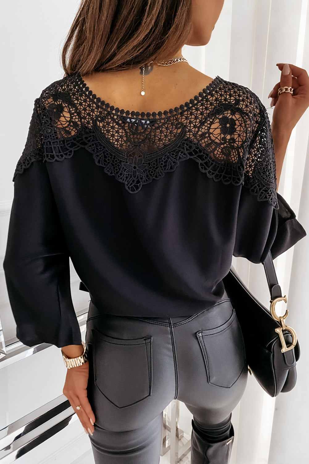 •Con el empalme de encaje en el hombro, la blusa es realmente llamativa