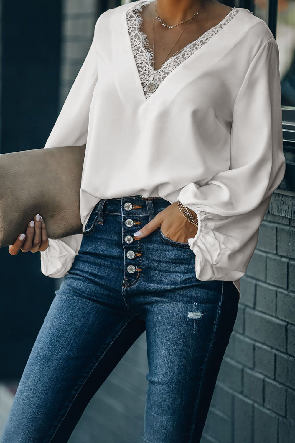 •Combina esta blusa con cuello en V con tus pantalones vaqueros rasgados para una apariencia deslumbrante