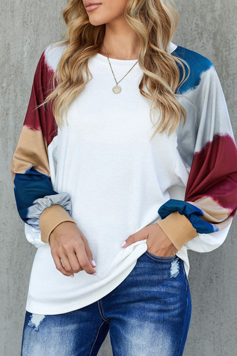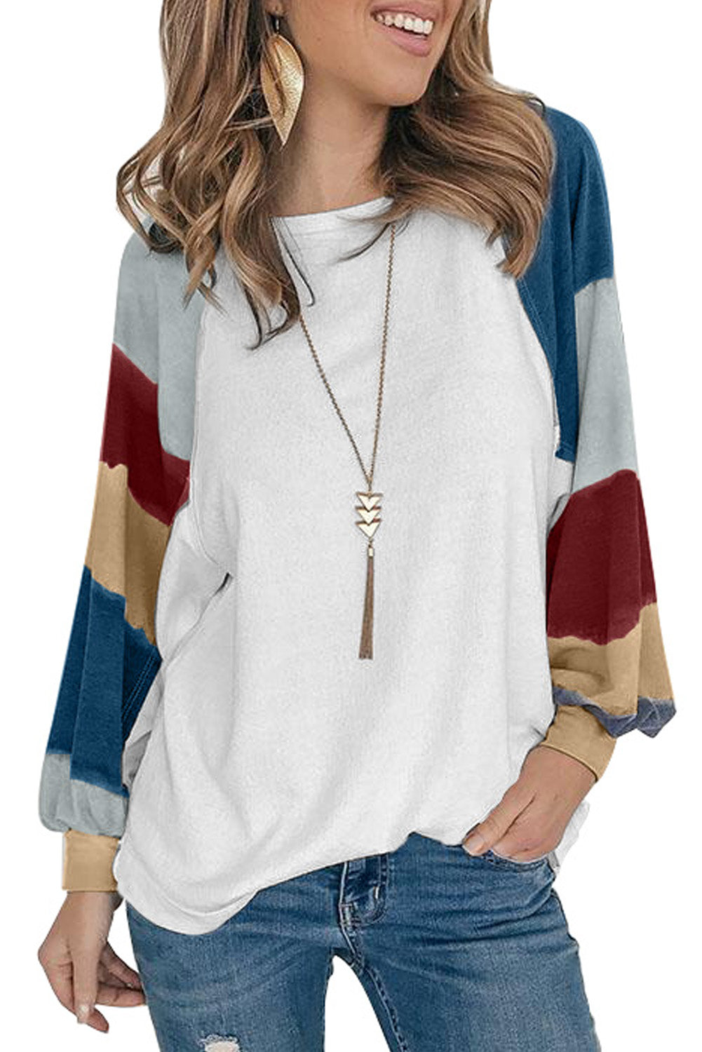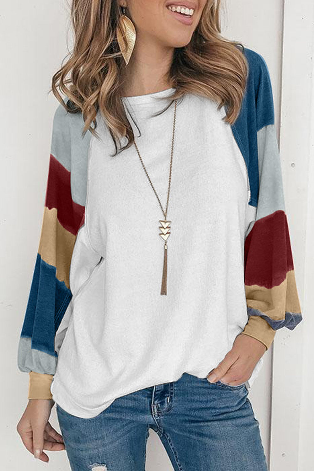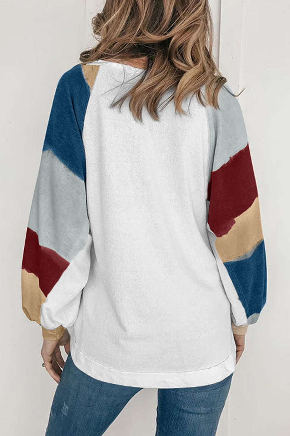 Camisetas holgadas de manga farol con bloque de color