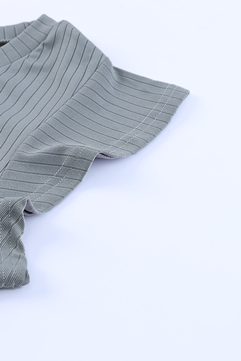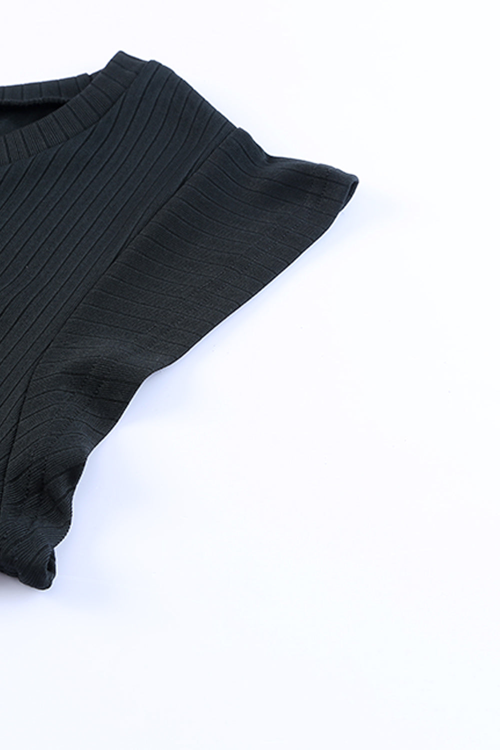 - Destacado con cuello redondo, manga acampanada, bolsillos laterales y parte superior acanalada.