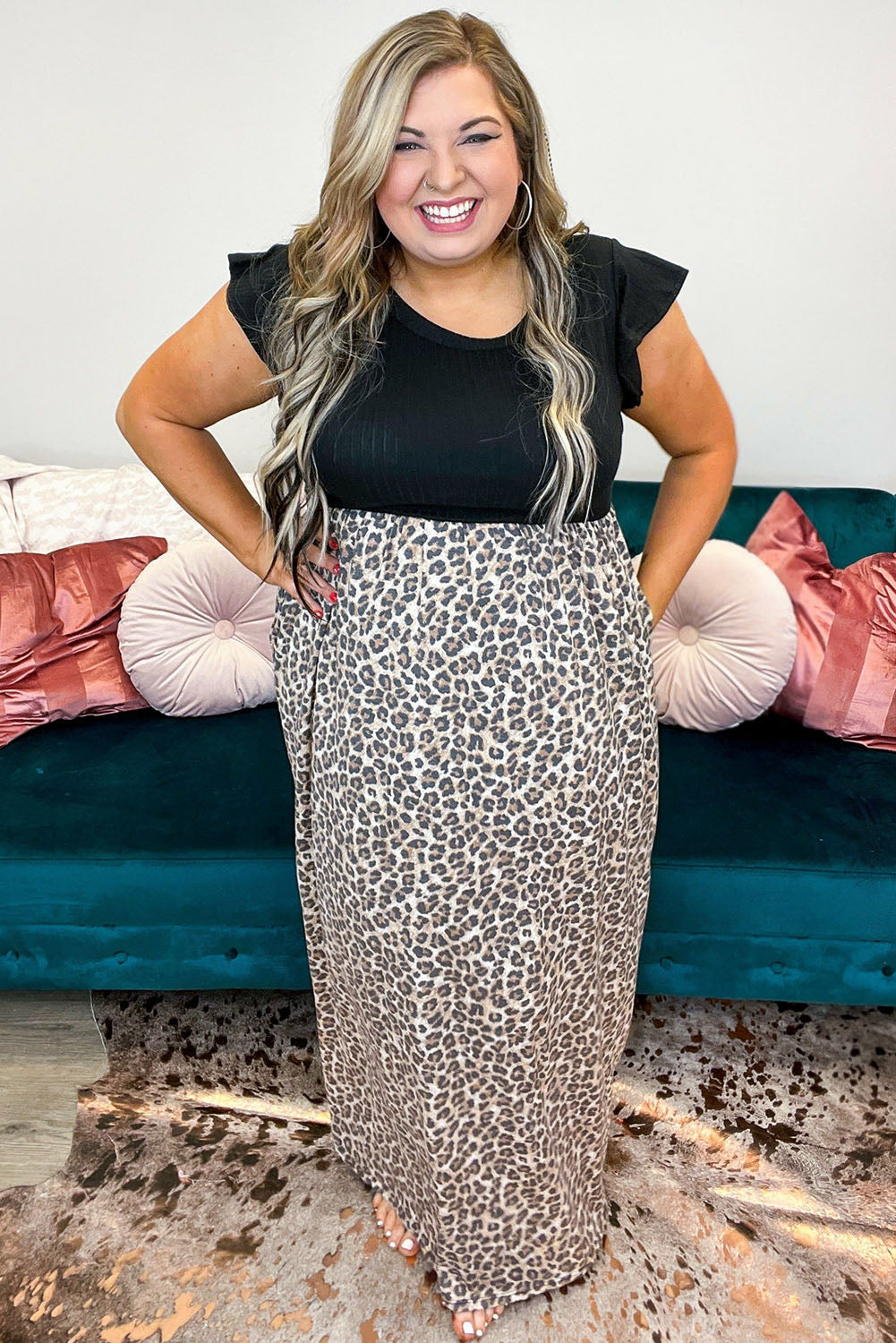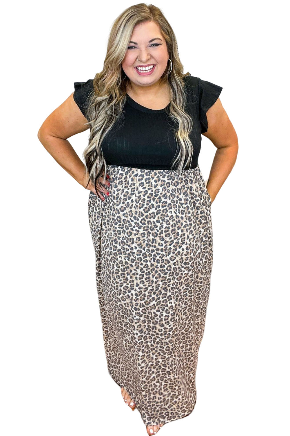 Vestido largo de canalé con patchwork de leopardo y bolsillos