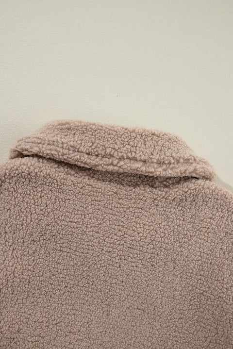 Light French Beige Zipper Pocketed Winter Fuzzy Jacket