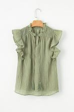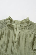 Meadow Mist Green V Neck Flutter Sleeve Textured Blouse