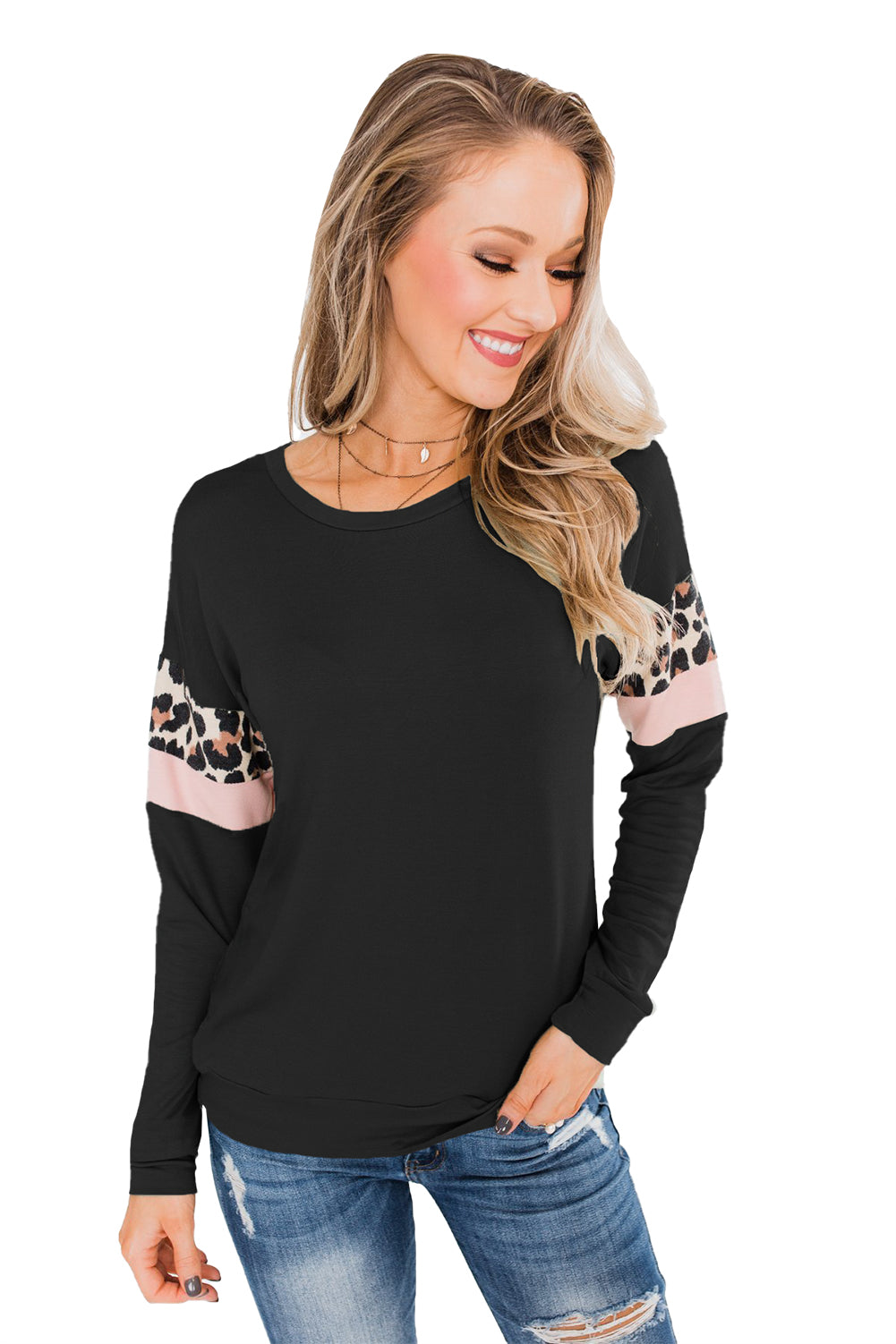 Blusa con bolsillo de rayas de leopardo de manga larga en color menta