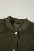 Mist Green Corduroy Fleece Patchwork Buttoned Bomber Jacket