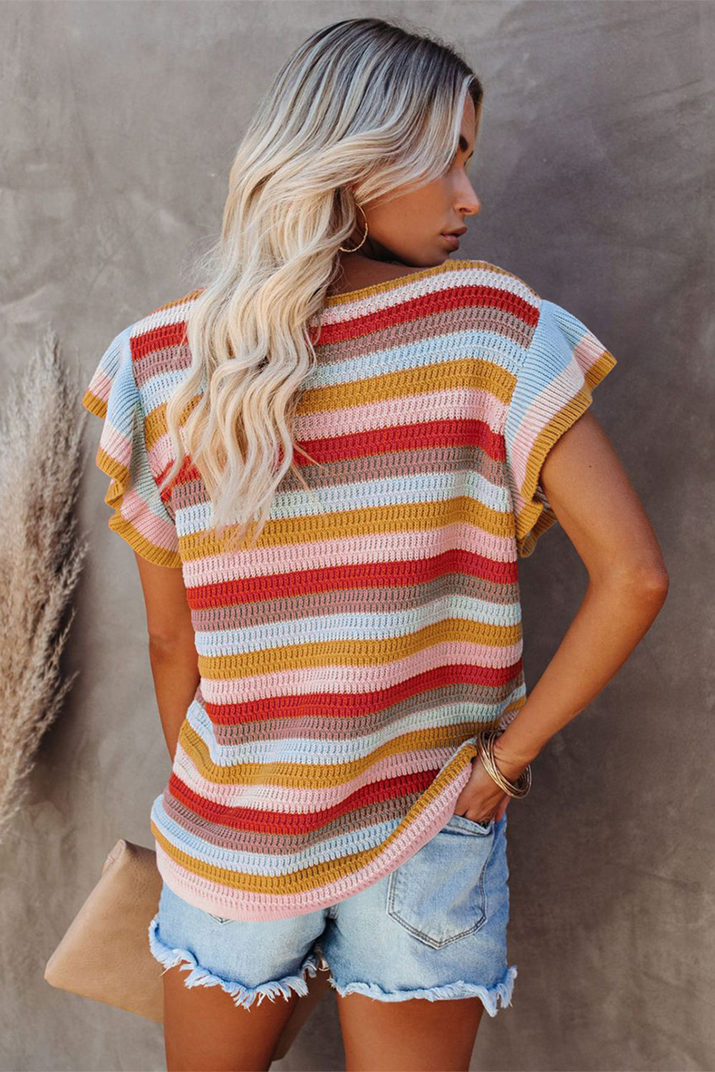 •Nuestro top de punto a rayas es perfectamente femenino independientemente de la temperatura con rayas de estilo retro
