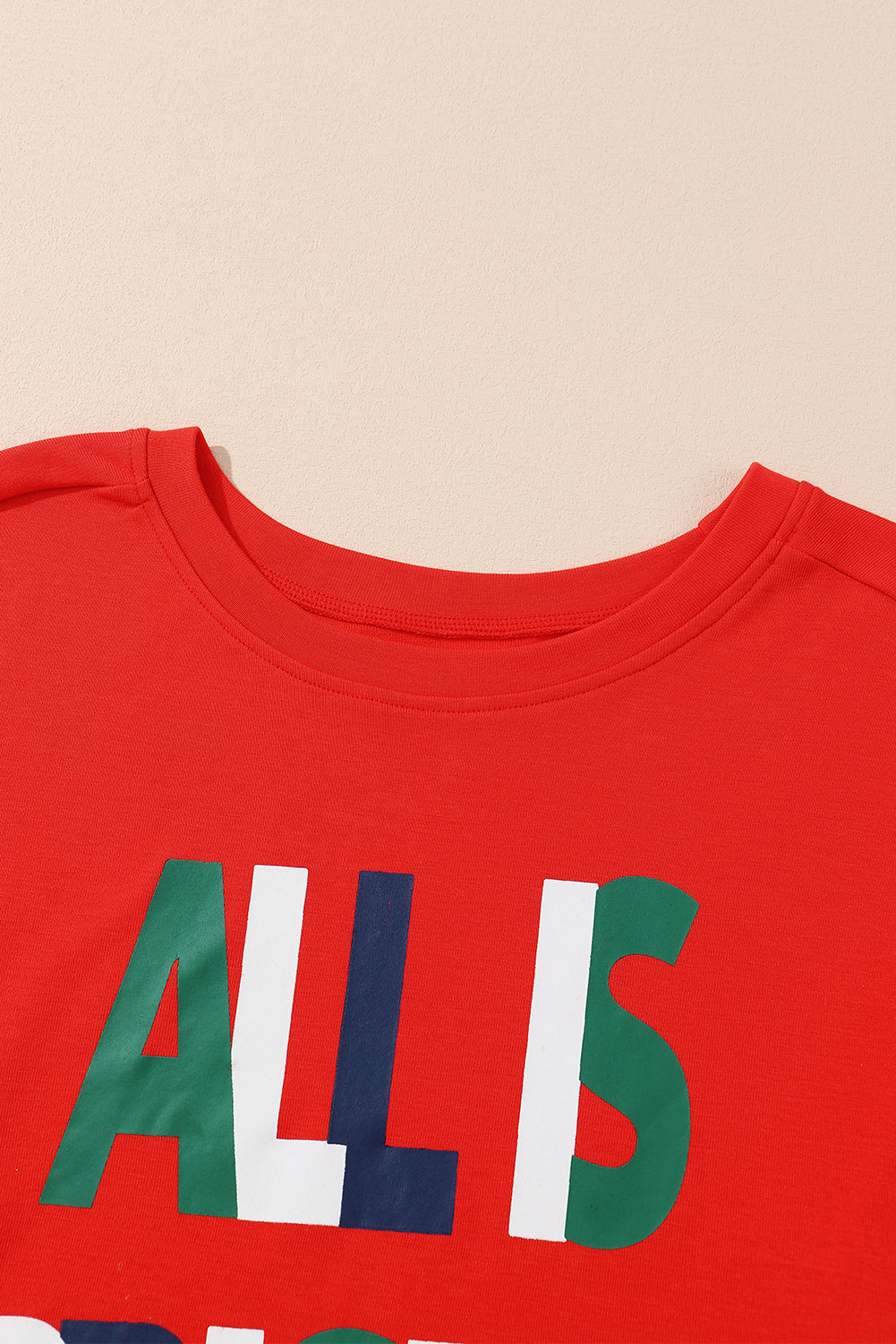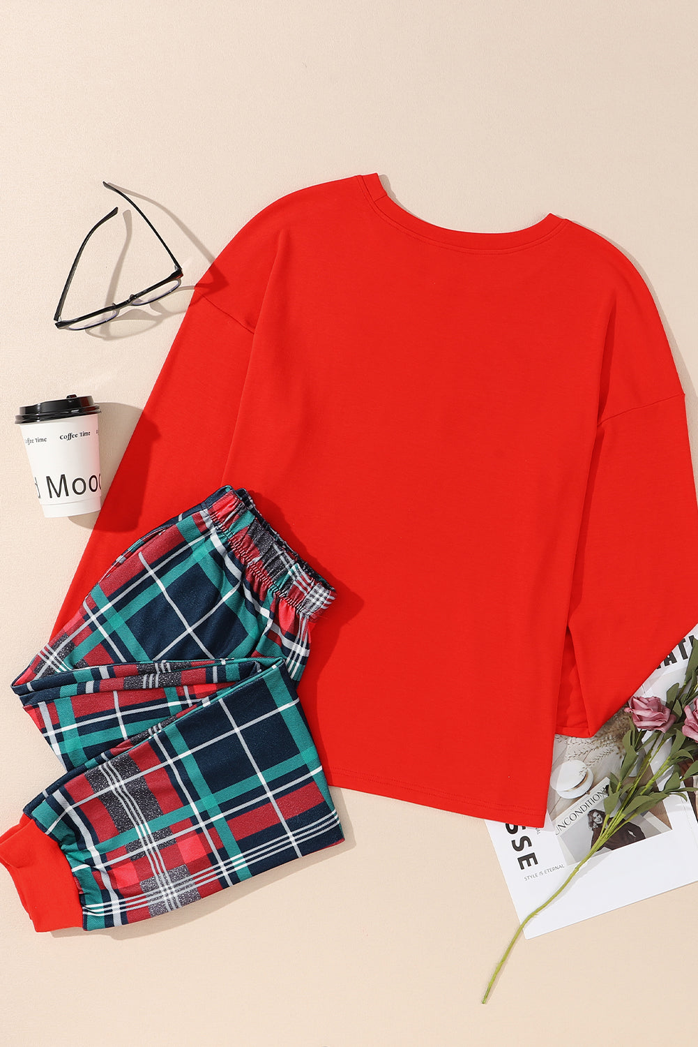 Multicolor ALL IS BRIGHT Graphic Christmas Plaid Pajamas Set