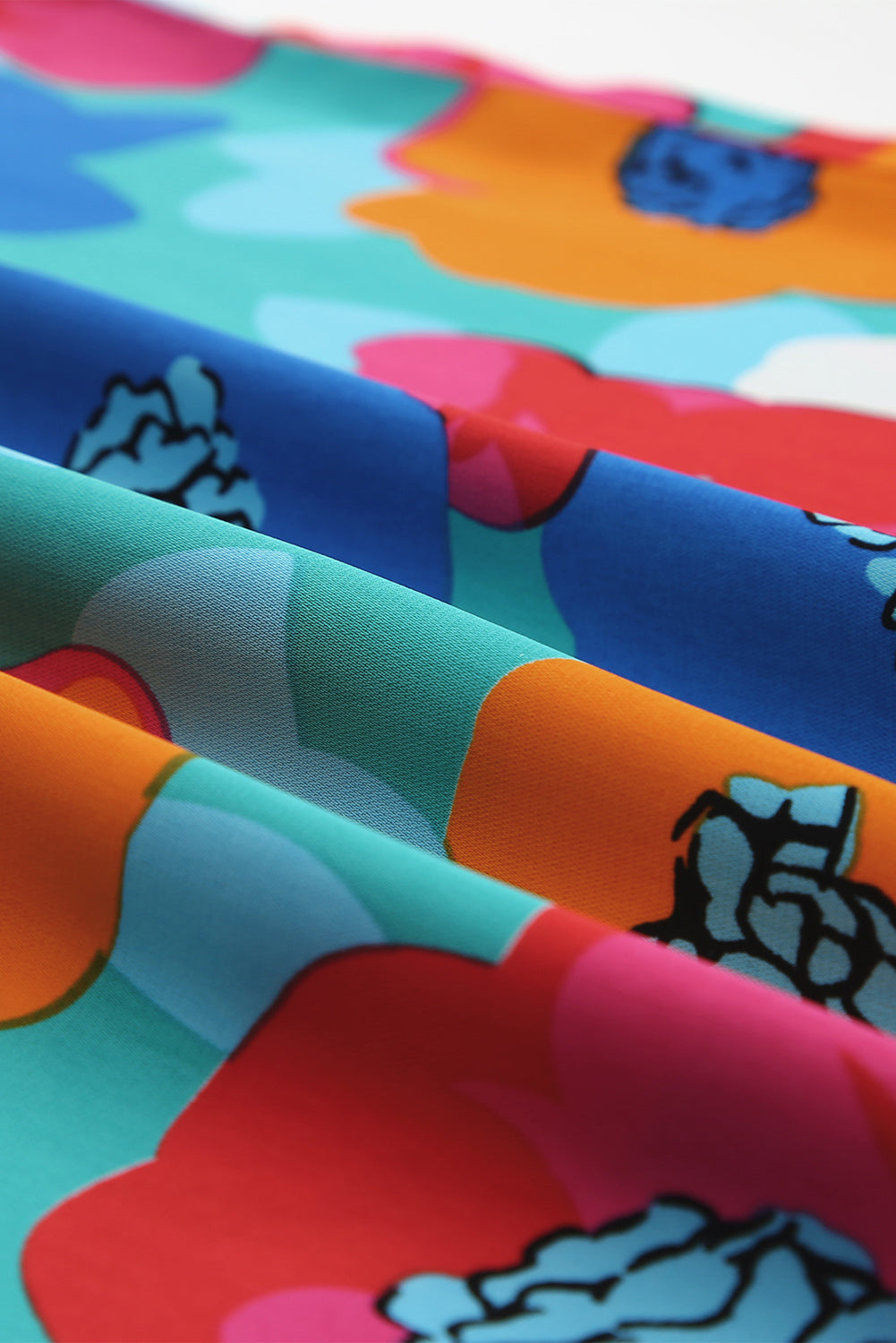 Blusa con cuello en V y manga 3/4 con estampado floral multicolor