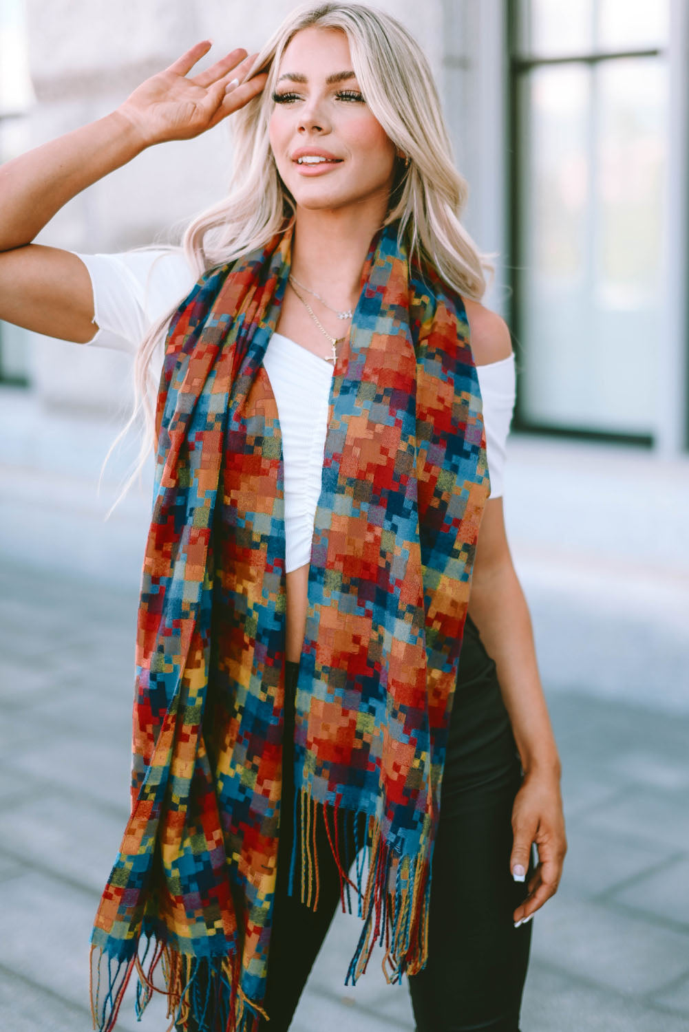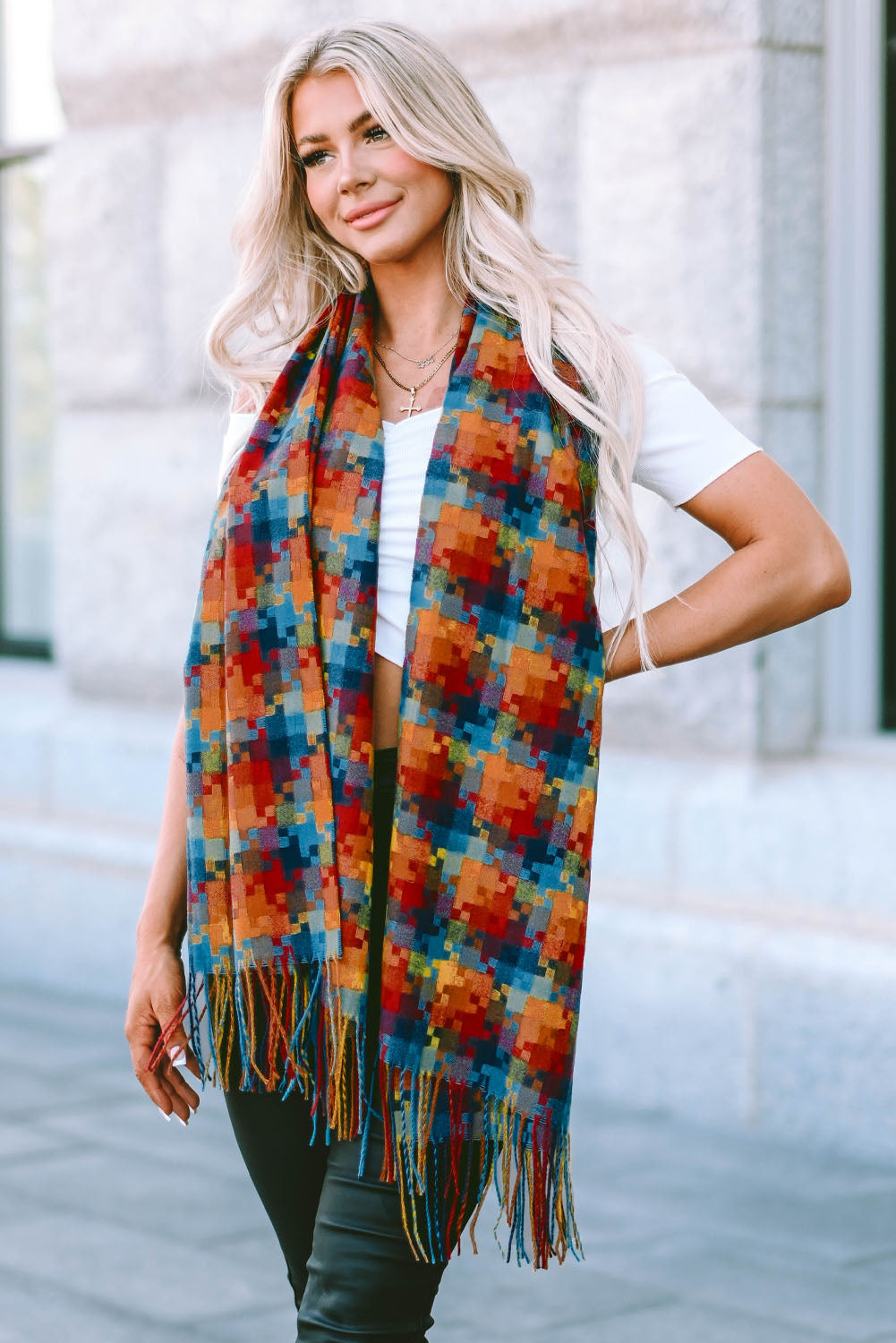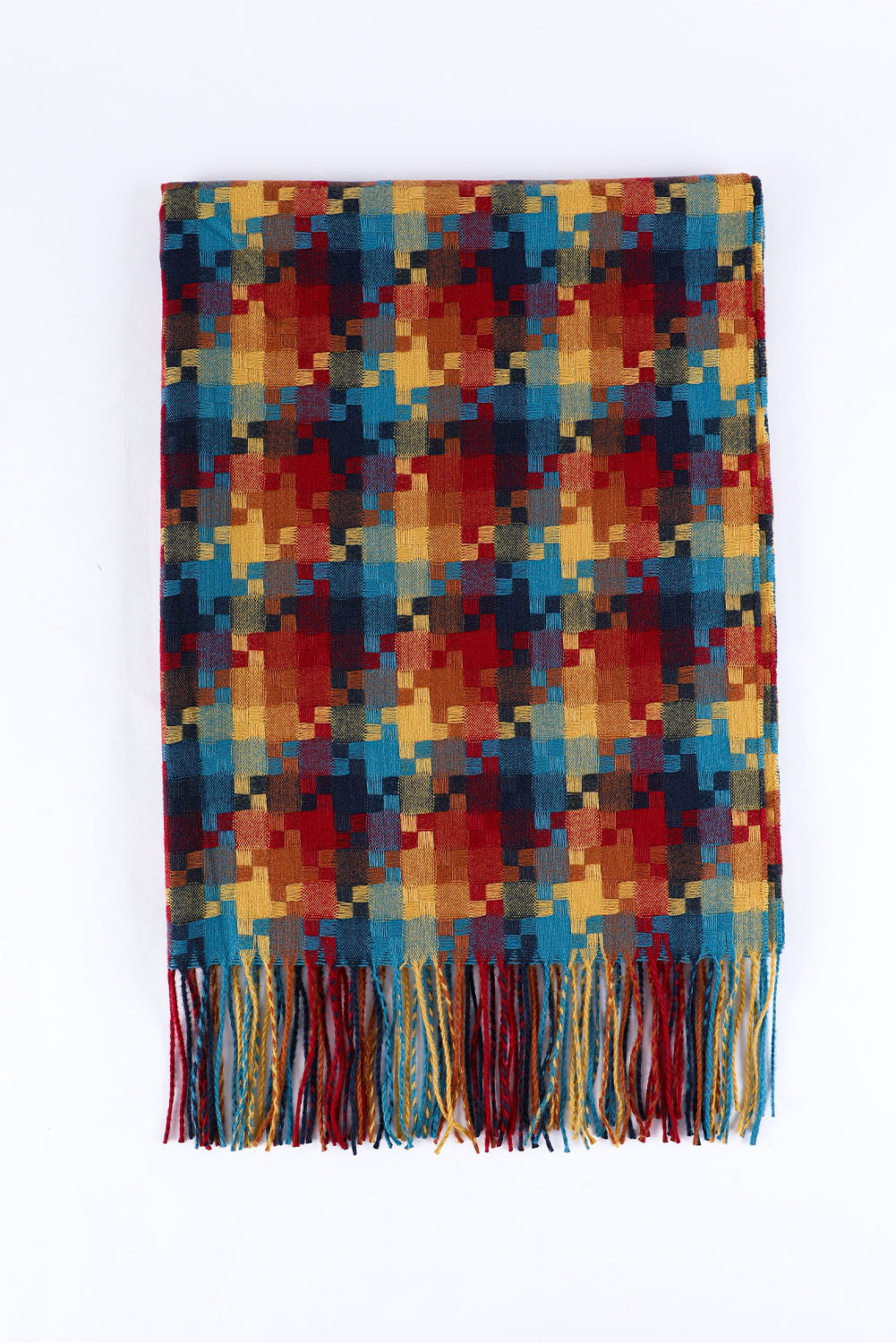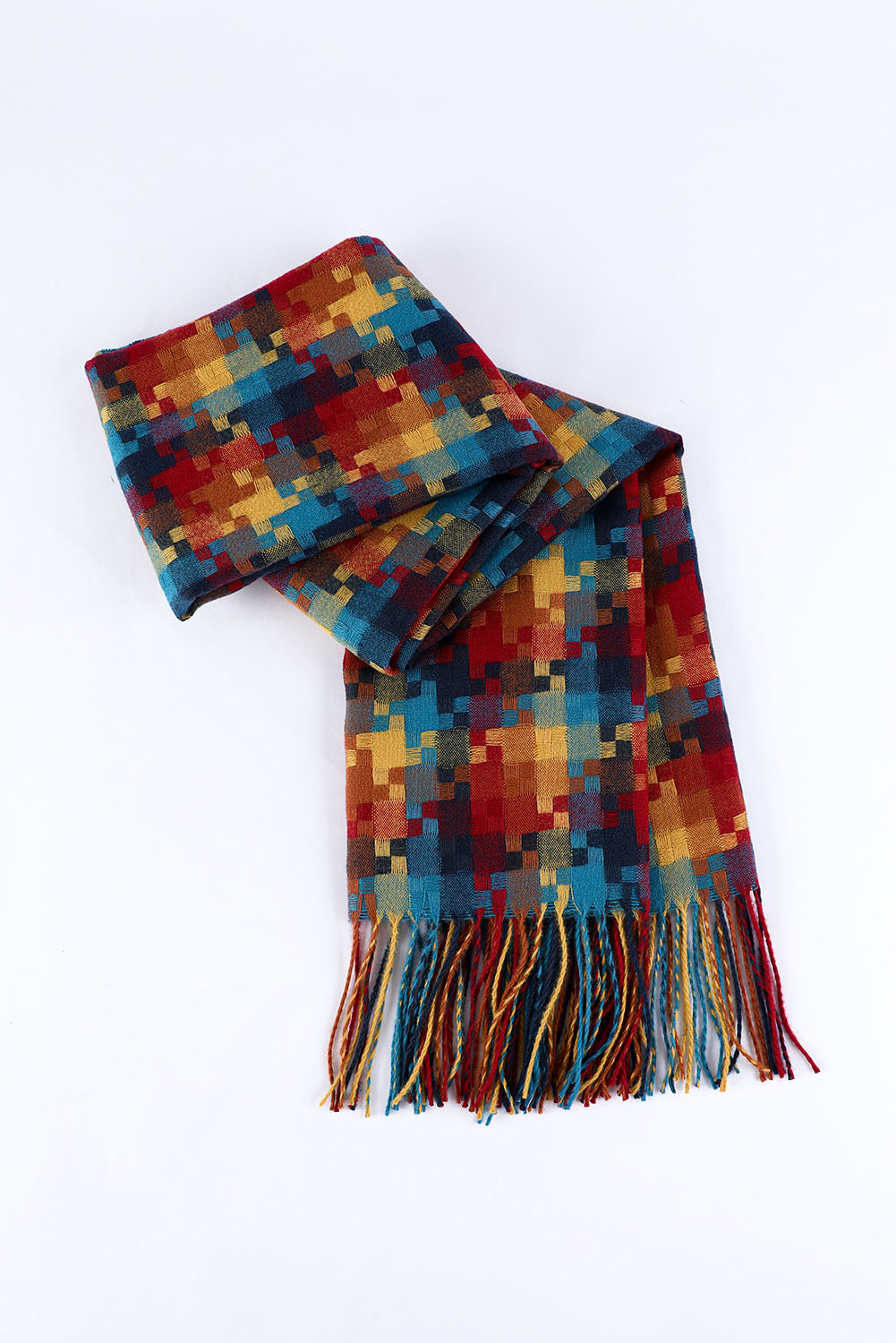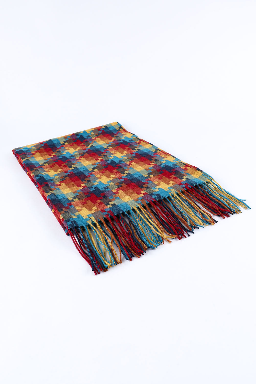 Bufanda con dobladillo con flecos y estampado de cuadros multicolor