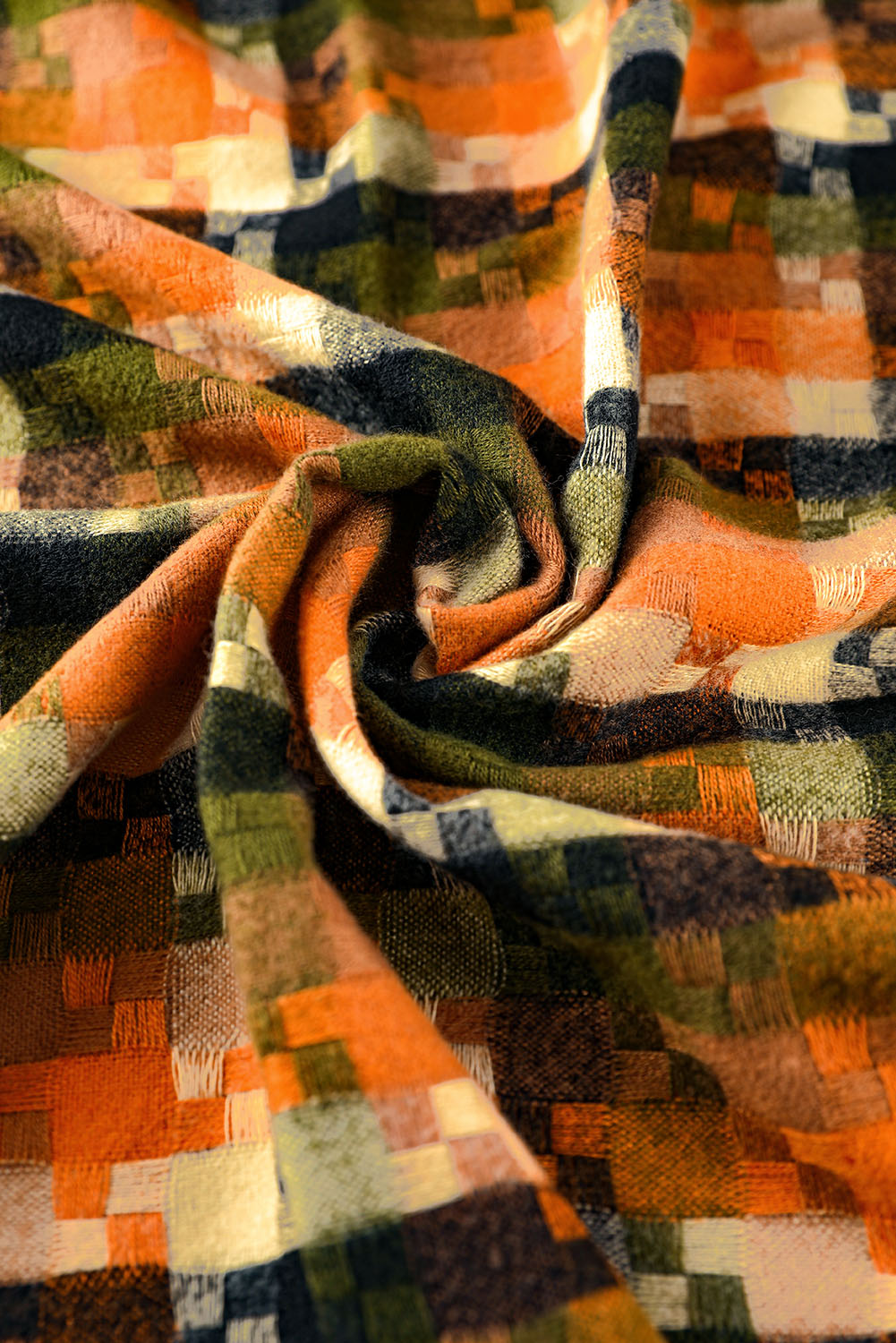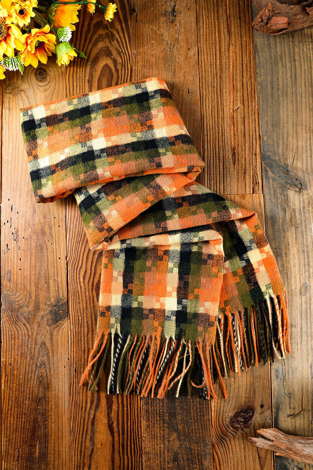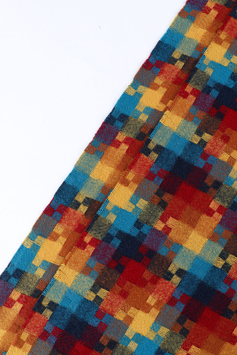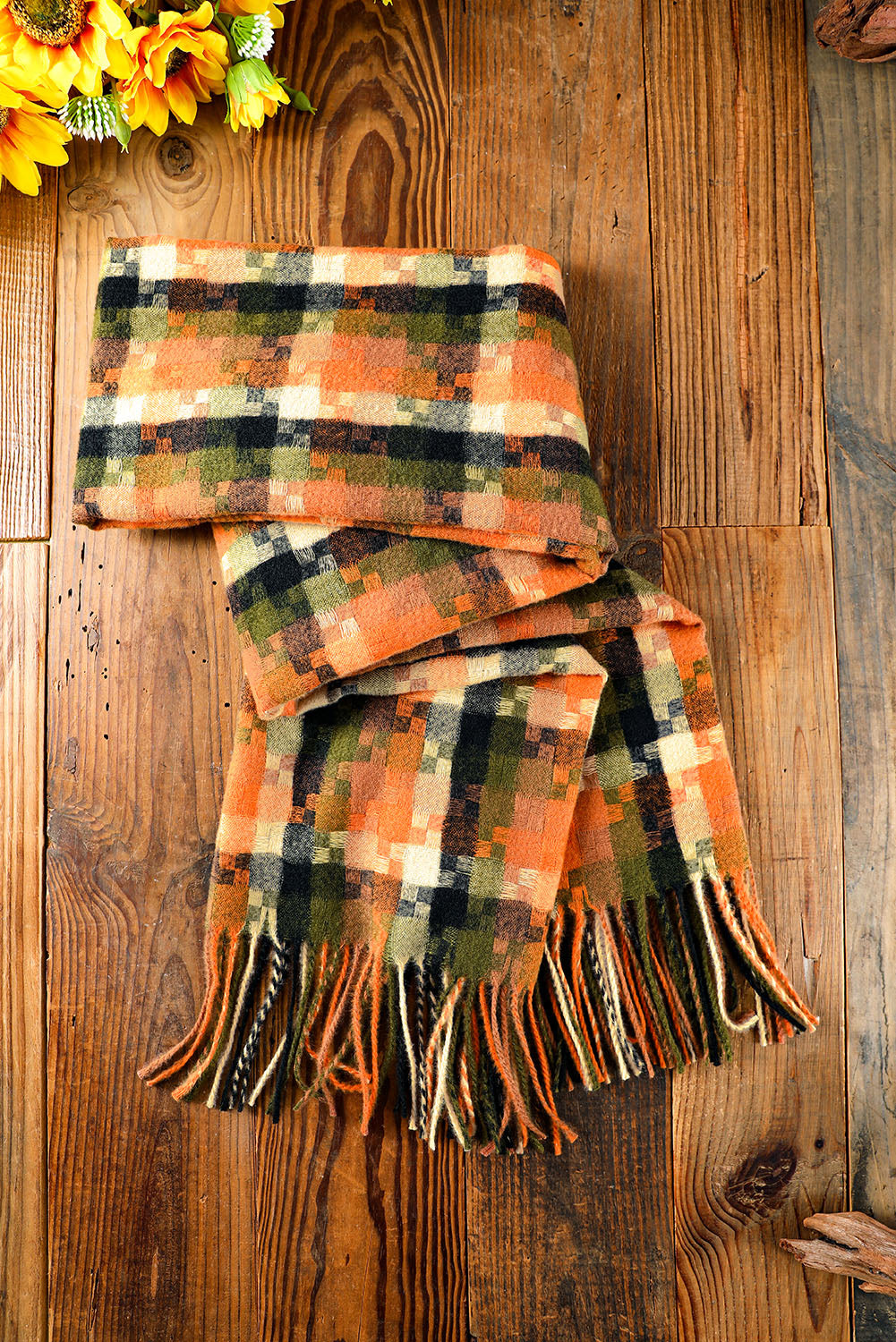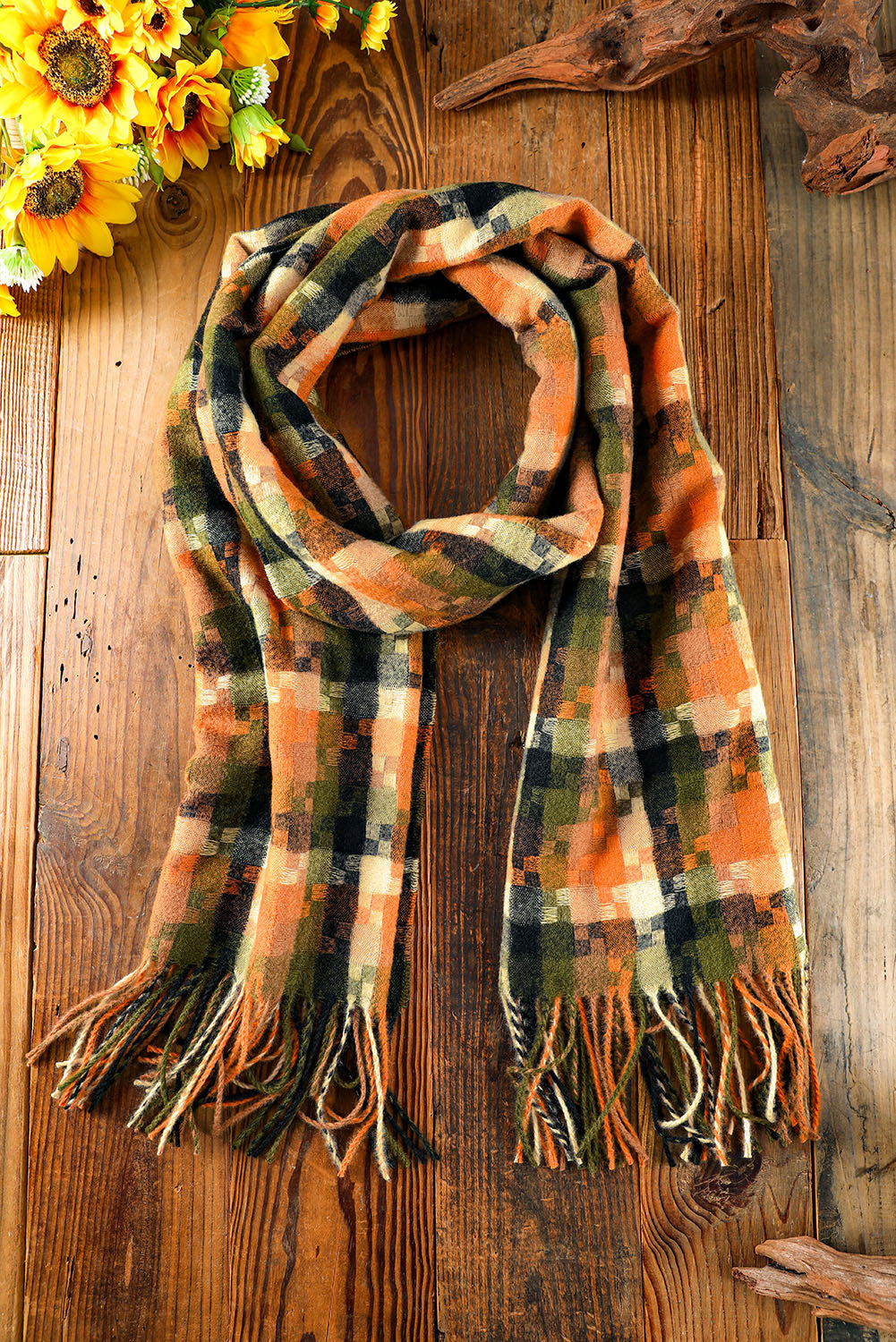 Bufanda con dobladillo con flecos y estampado de cuadros multicolor