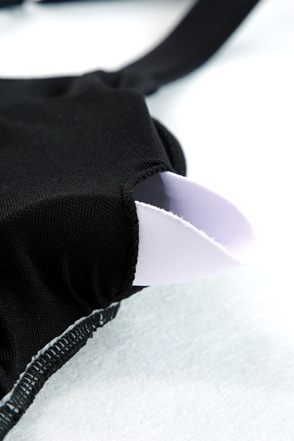 Traje de baño tankini con tiras y escote de muesca en contraste de cintura alta