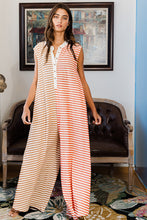 Orange Stripe Oversized Buttoned Front Sleeveless Wide Leg Jumpsuit