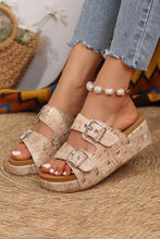Pale Khaki Retro Buckle Studded Platform Slippers