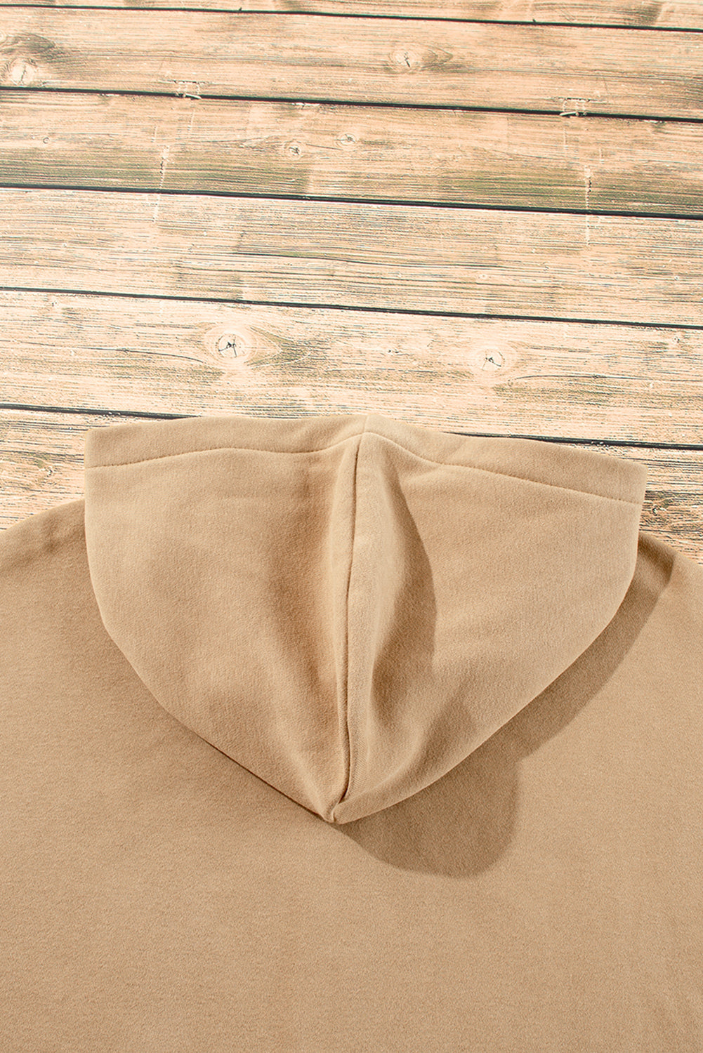 Parchment Fleece Lined Half Zipper Kangaroo Pockets Loose Hoodie