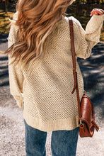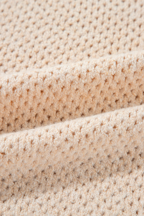 Parchment Loose Eyelet V Neck Drop Shoulder Sweater