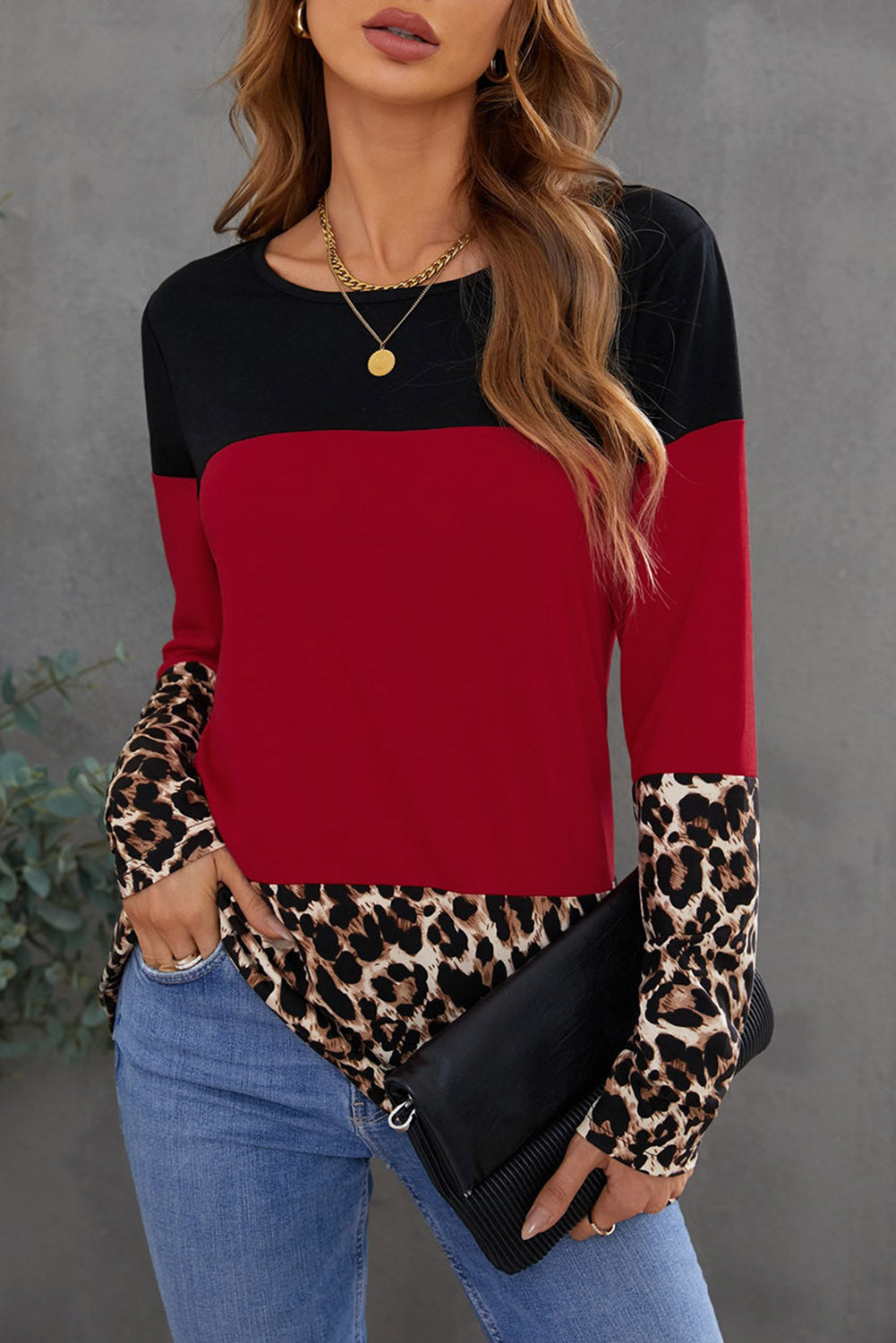 Top de manga larga con bloques de color de leopardo a juego para padres e hijos