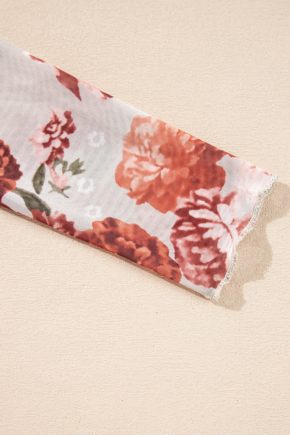 Pink Floral Printed Long Sleeve Sheath Bodysuit