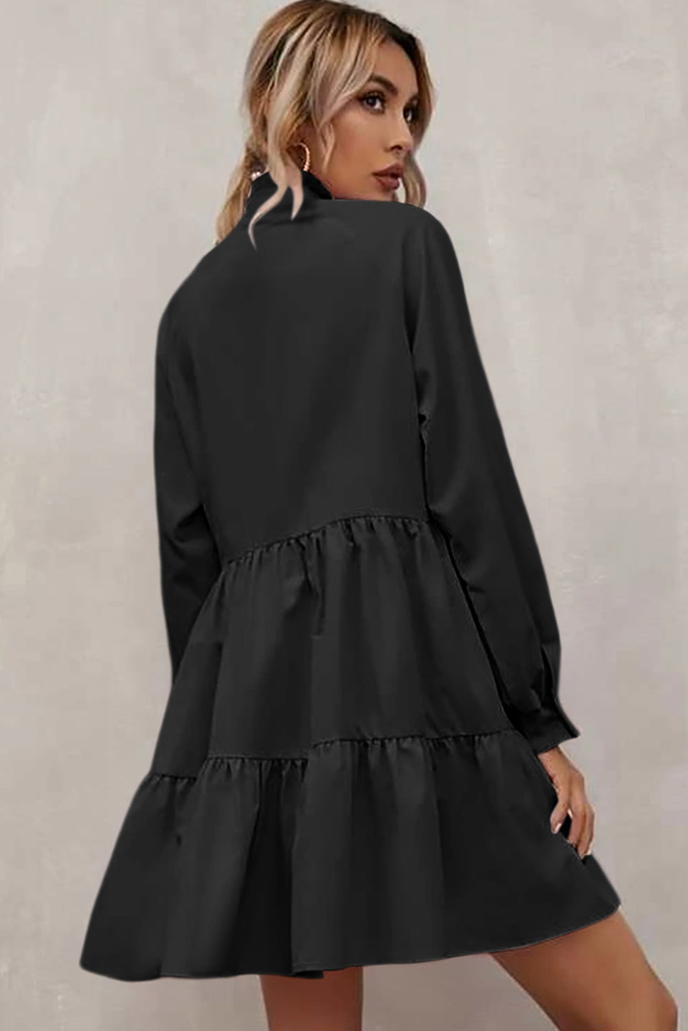 Pink Frilled Stand Collar Long Sleeve Ruffle Dress