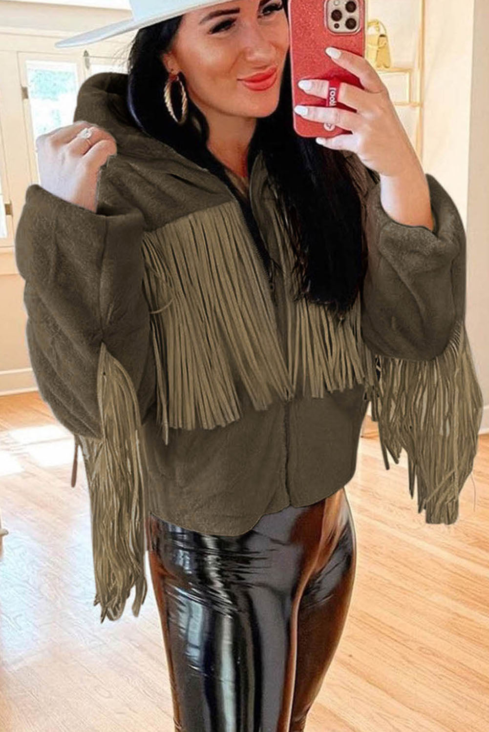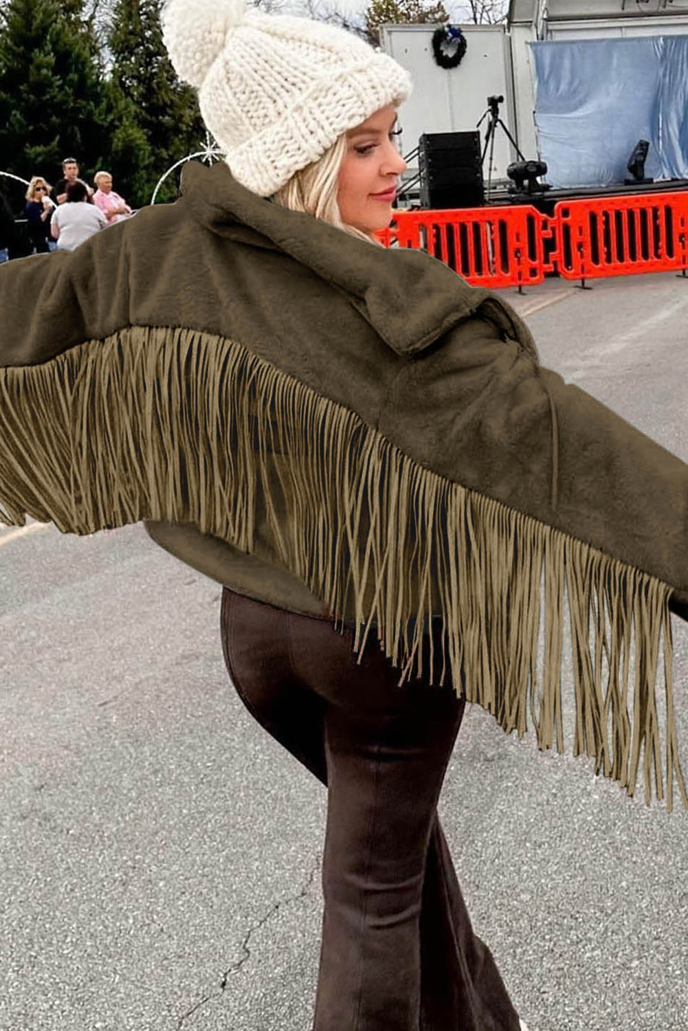 - Presenta el vellón más acogedor con detalles de flecos de gamuza.
