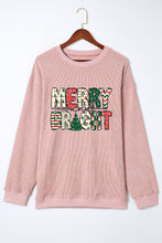 Pink MERRY and BRIGHT Christmas Tree Print Ribbed Sweatshirt