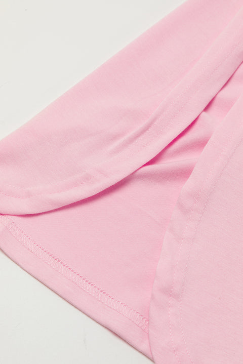 Pink V Neck Hidden Pocket Splits Maxi T-shirt Dress