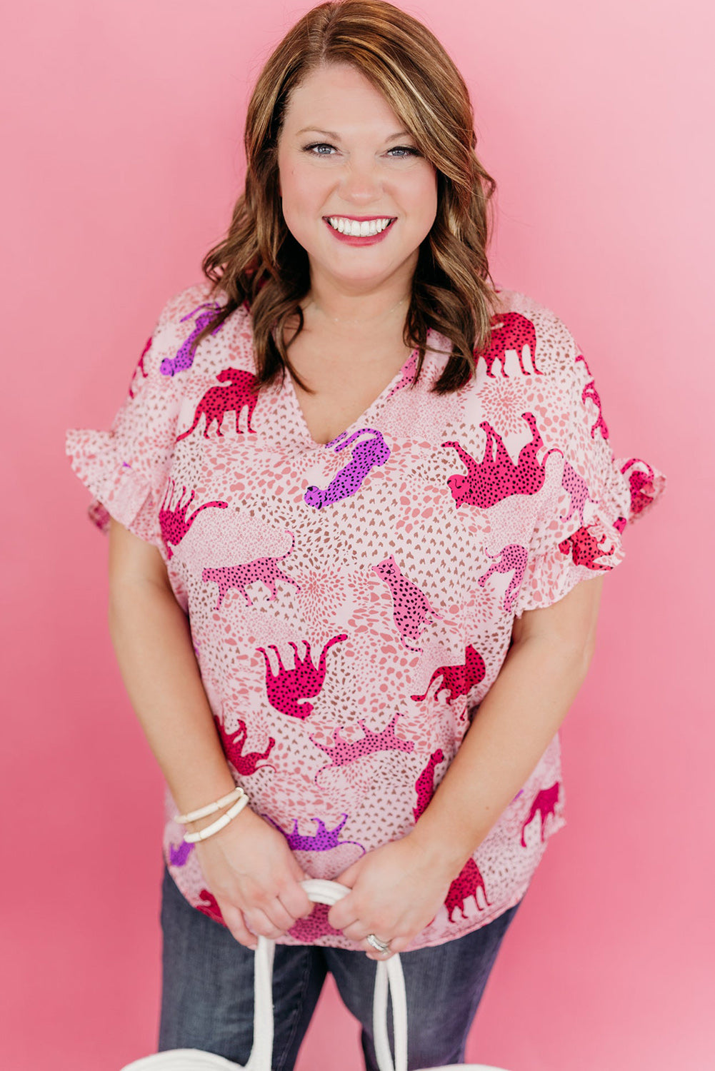 Top de manga corta con volantes y estampado de jaguar de talla grande