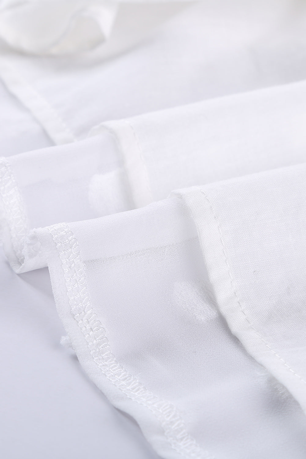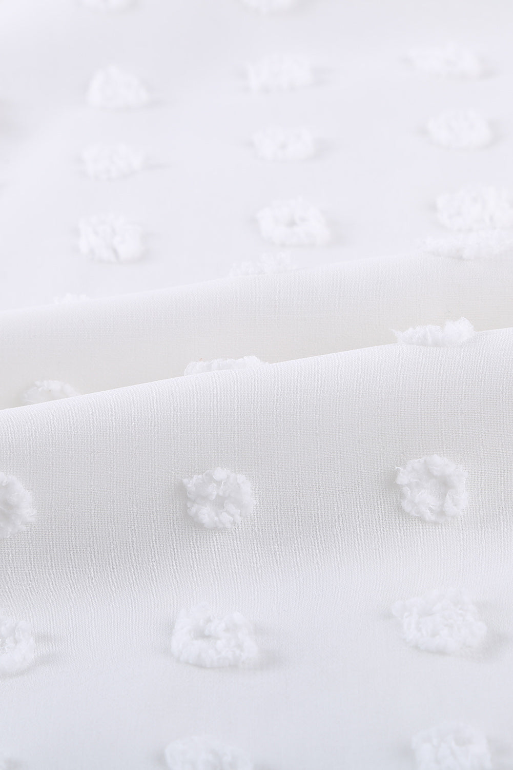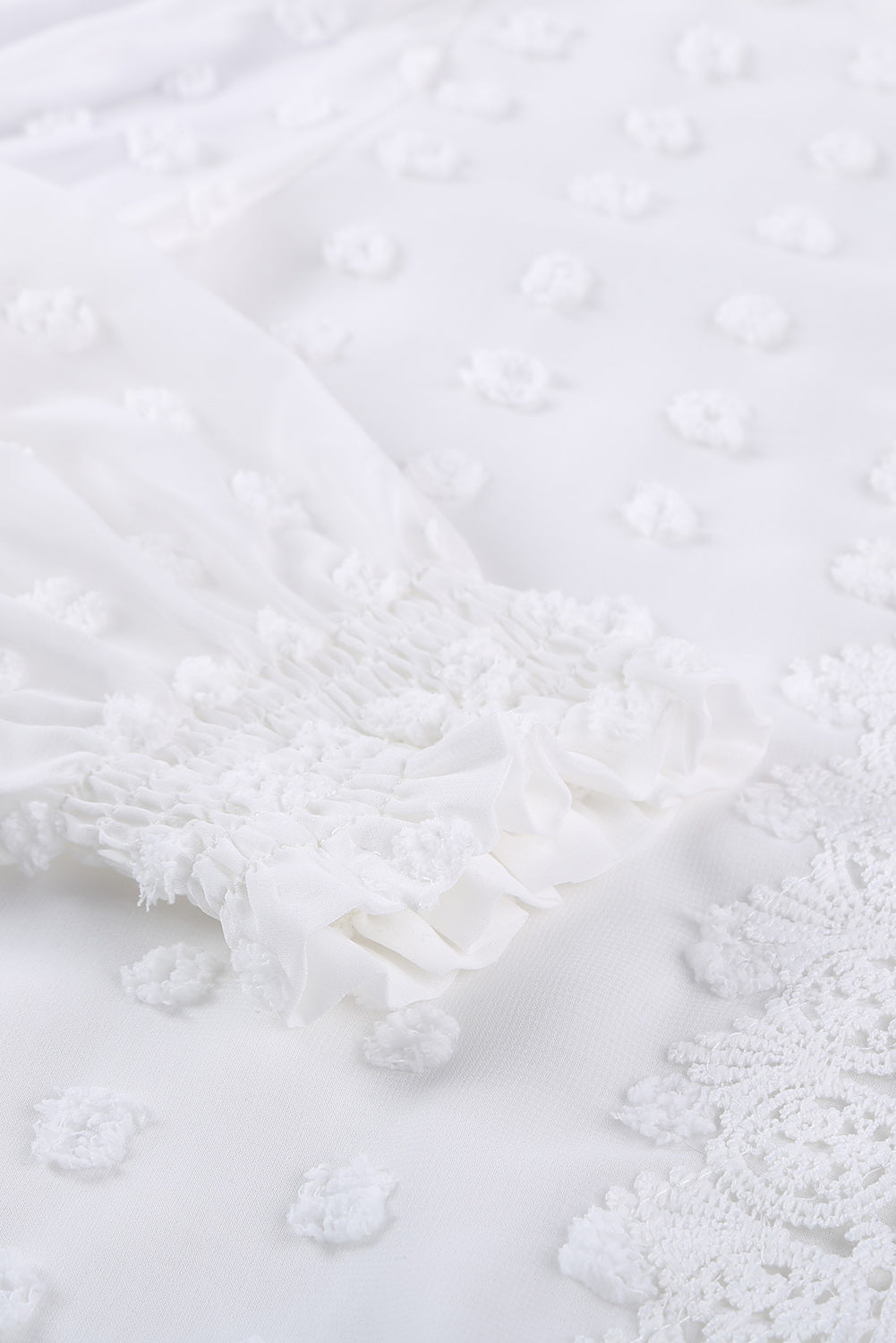 •Mangas largas con puños fruncidos, cuello redondo con encaje
