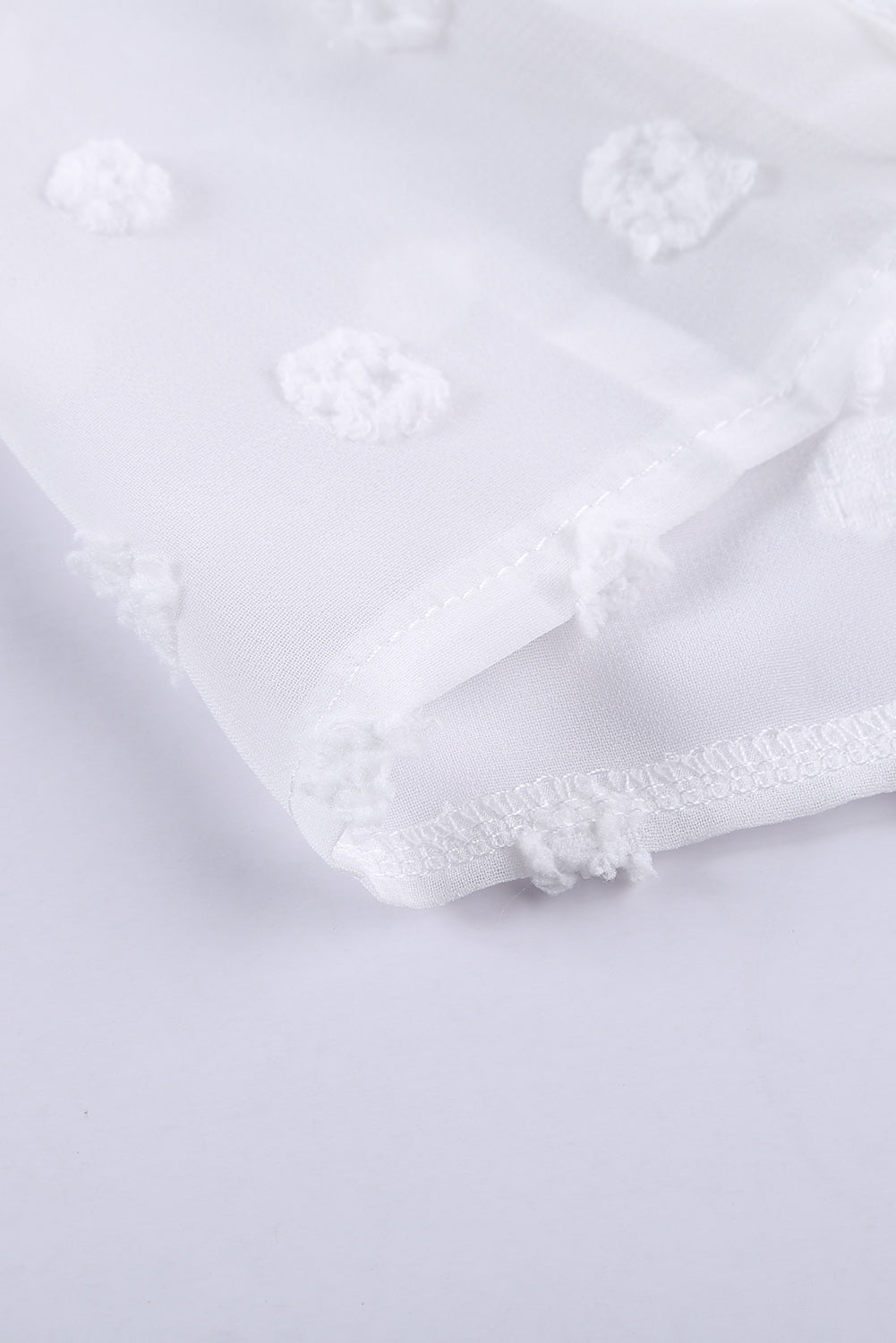 •Esta blusa transparente presenta un panel frontal de encaje de ganchillo