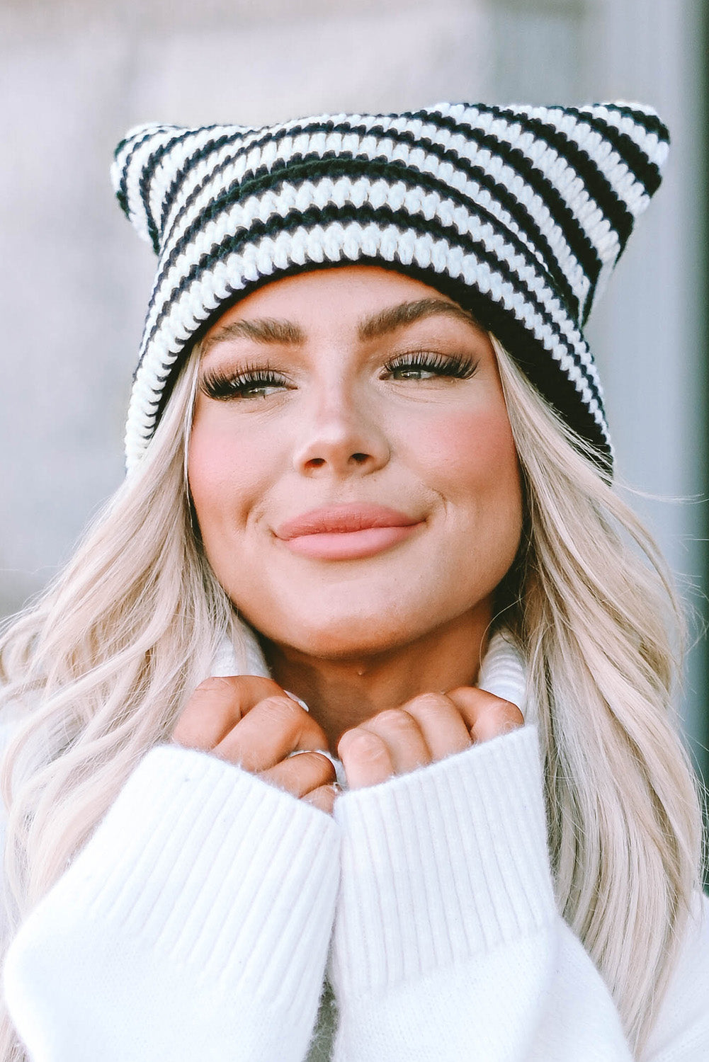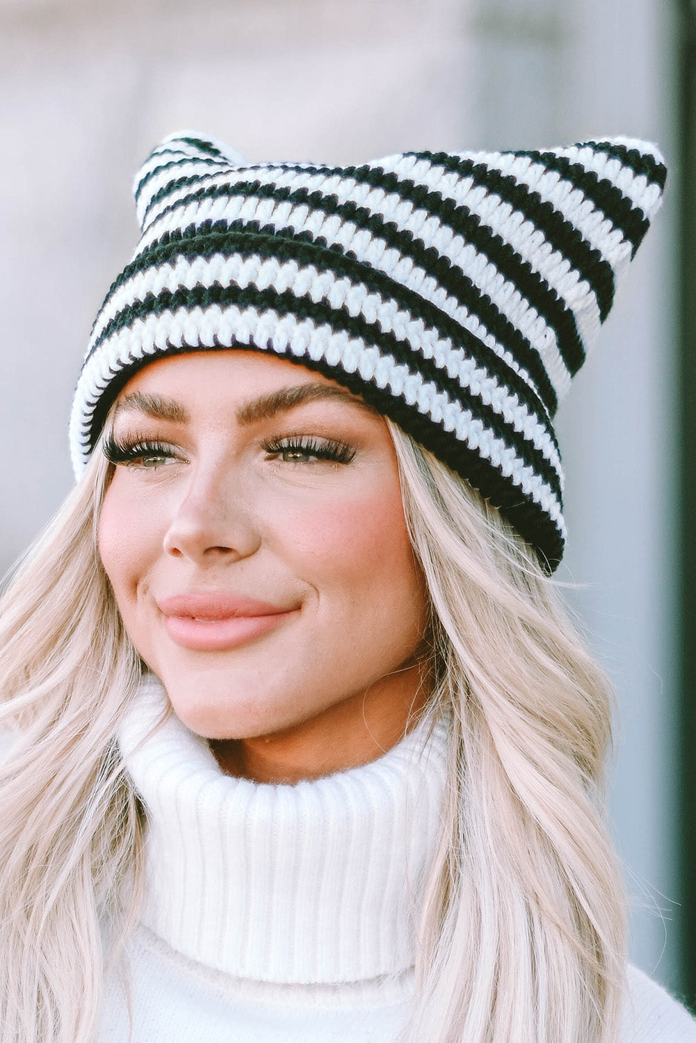 - Mantente abrigado y cómodo con este lindo gorro tejido con orejas de gato