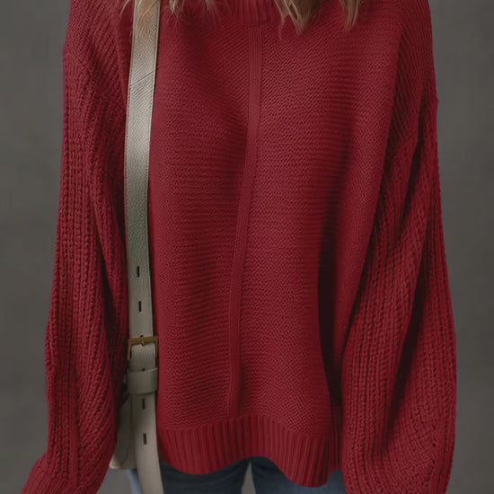 Red Dahlia Solid Color Front Seam Drop Shoulder Loose Sweater