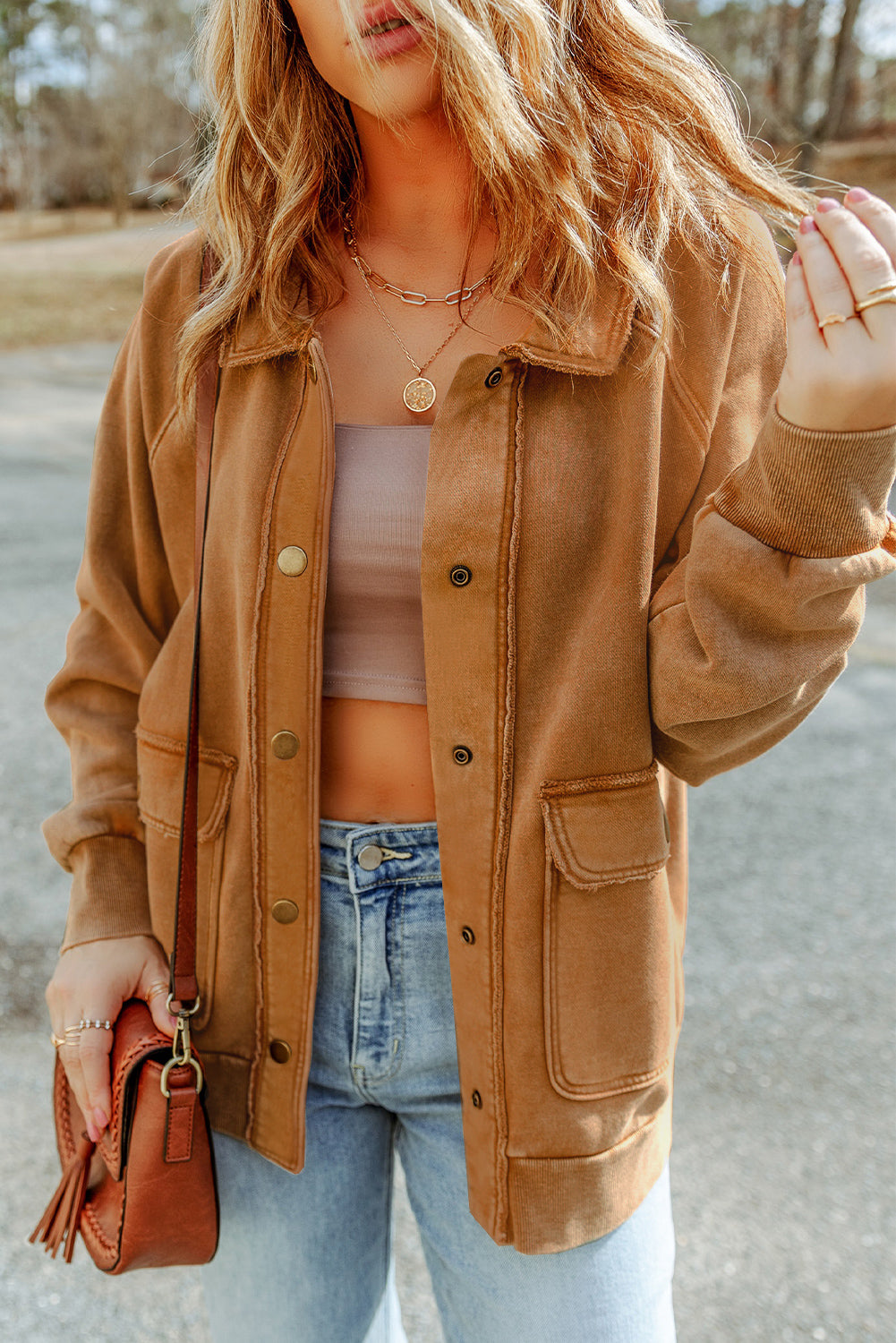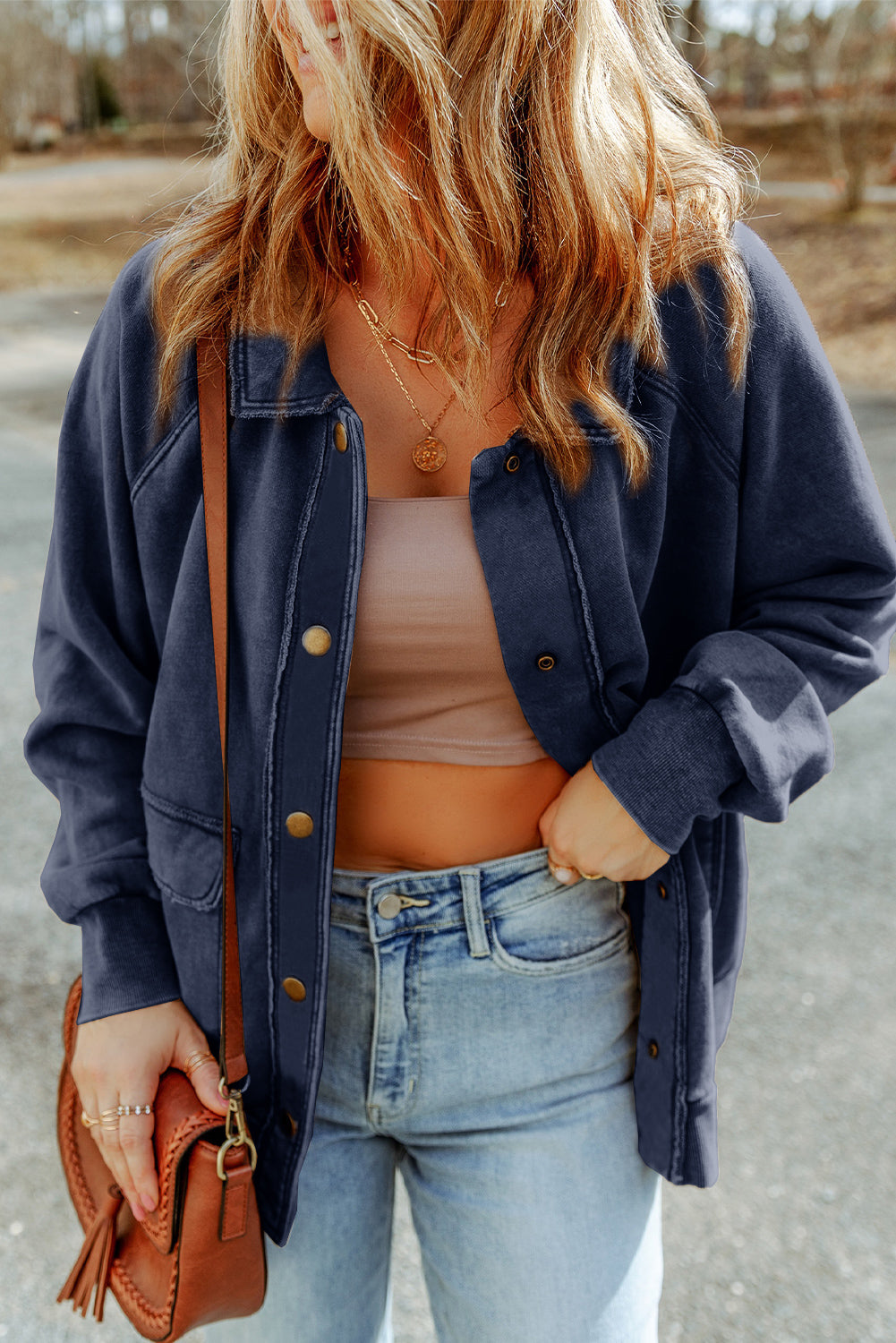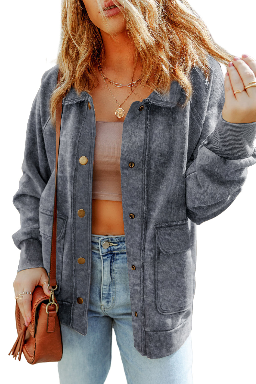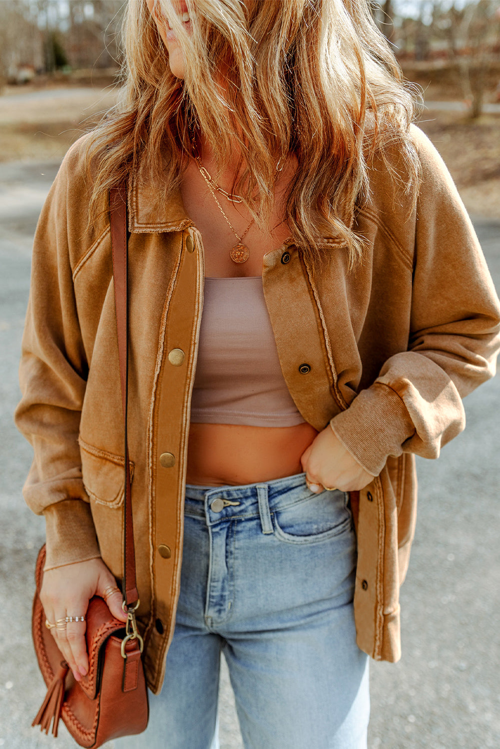 - Un diseño con lavado vintage añade un encanto atemporal a esta chaqueta camisera