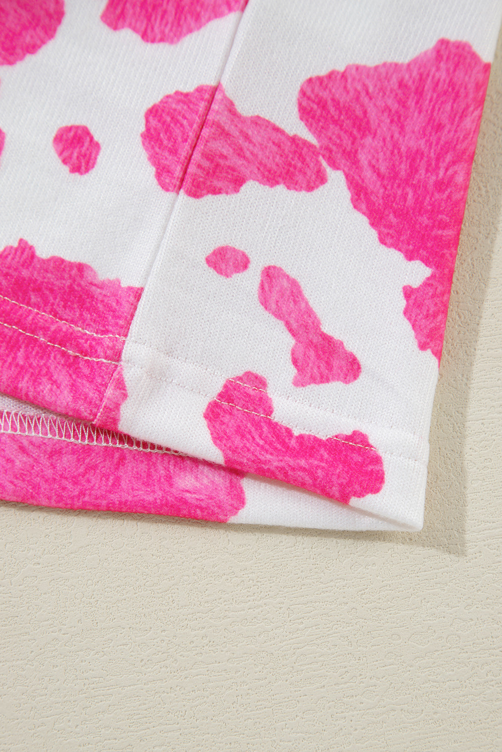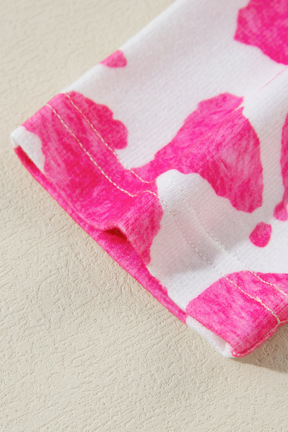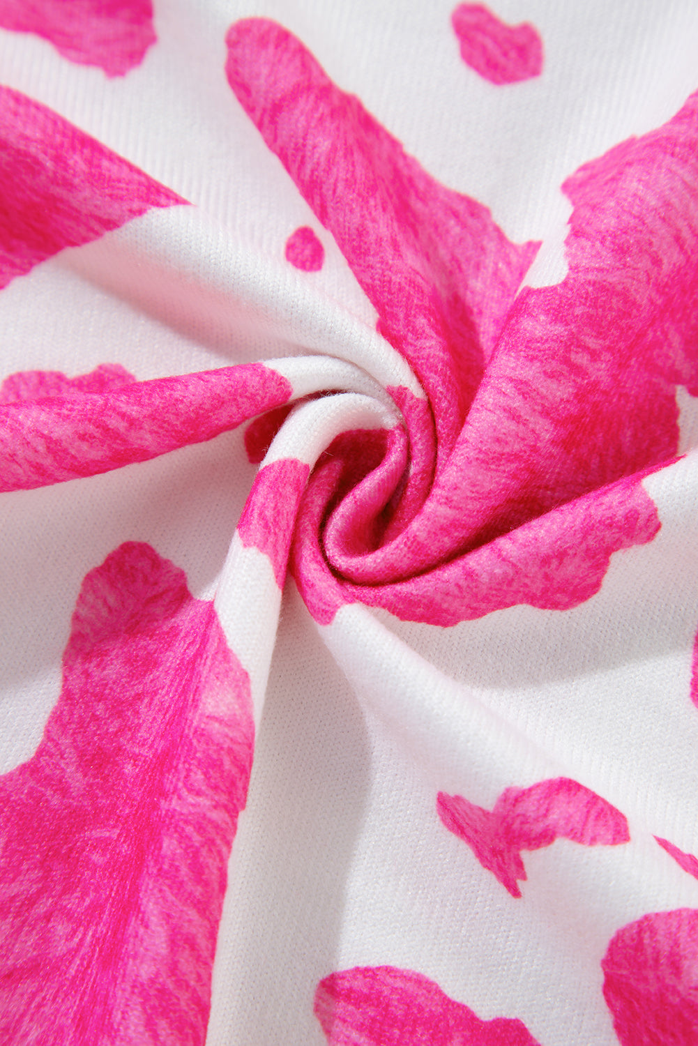 Rose Animal Print Long Sleeve V Neck Plus Size Top