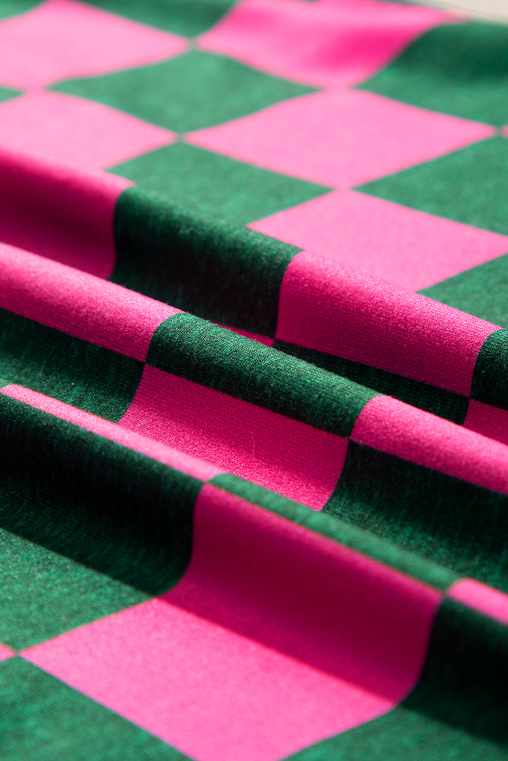 Rose Checkered Print Side Slit High Waist Midi Skirt