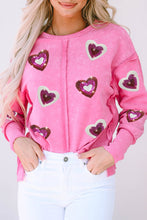 Sequin Heart Shaped Exposed Seam Pullover Sweatshirt