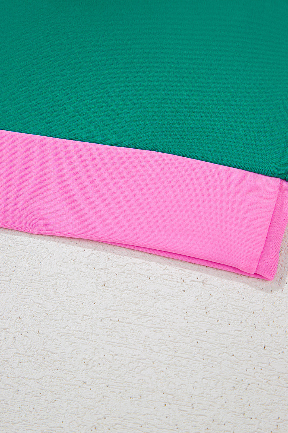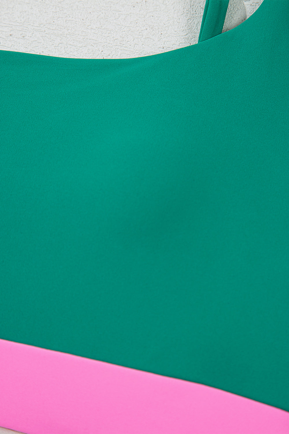 Sea Green Contrast Trim Colorblock Patchwork High Waisted Bikini